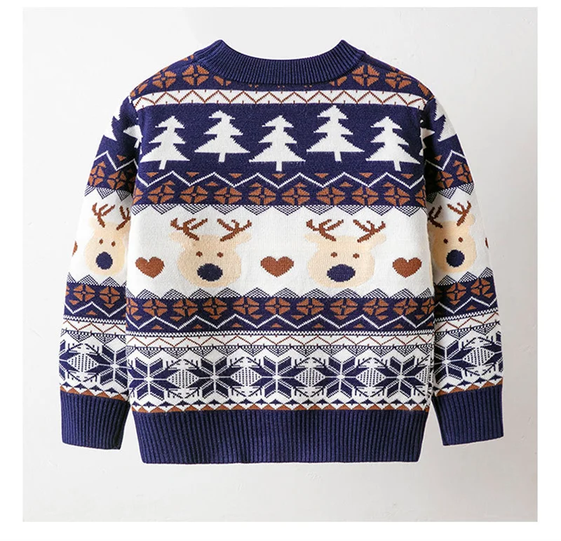Cartoon Deer Design Knitted Christmas Sweaters For Kids