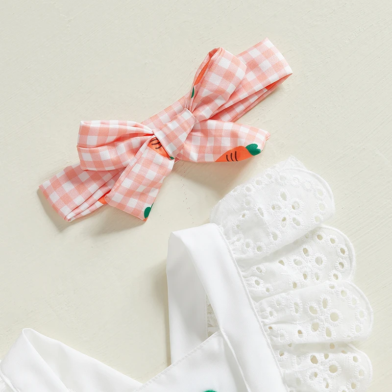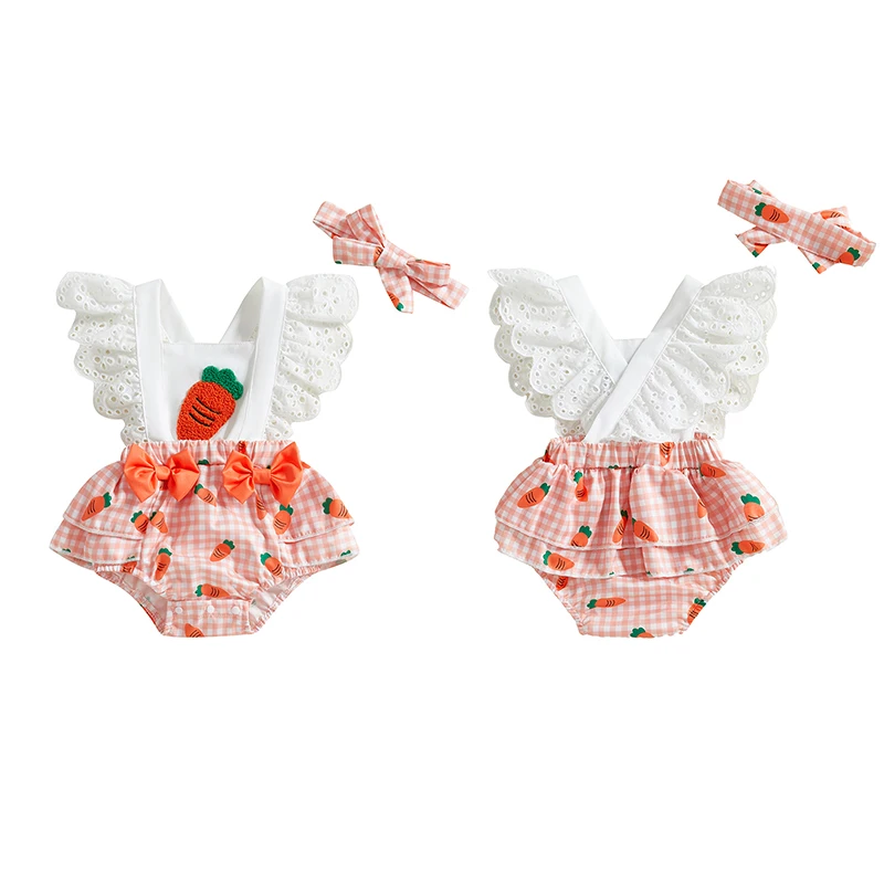 Baby Girl Square Neck Carrot Print Bodysuit with Headband