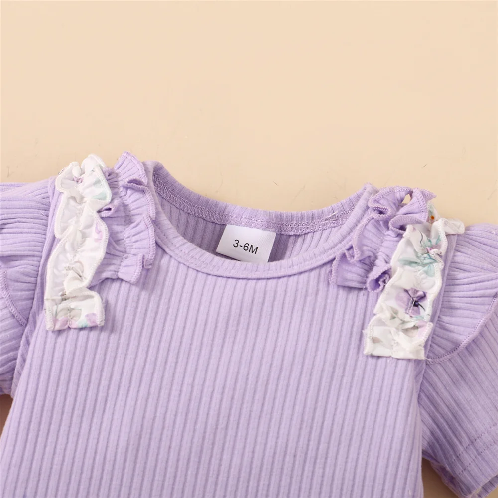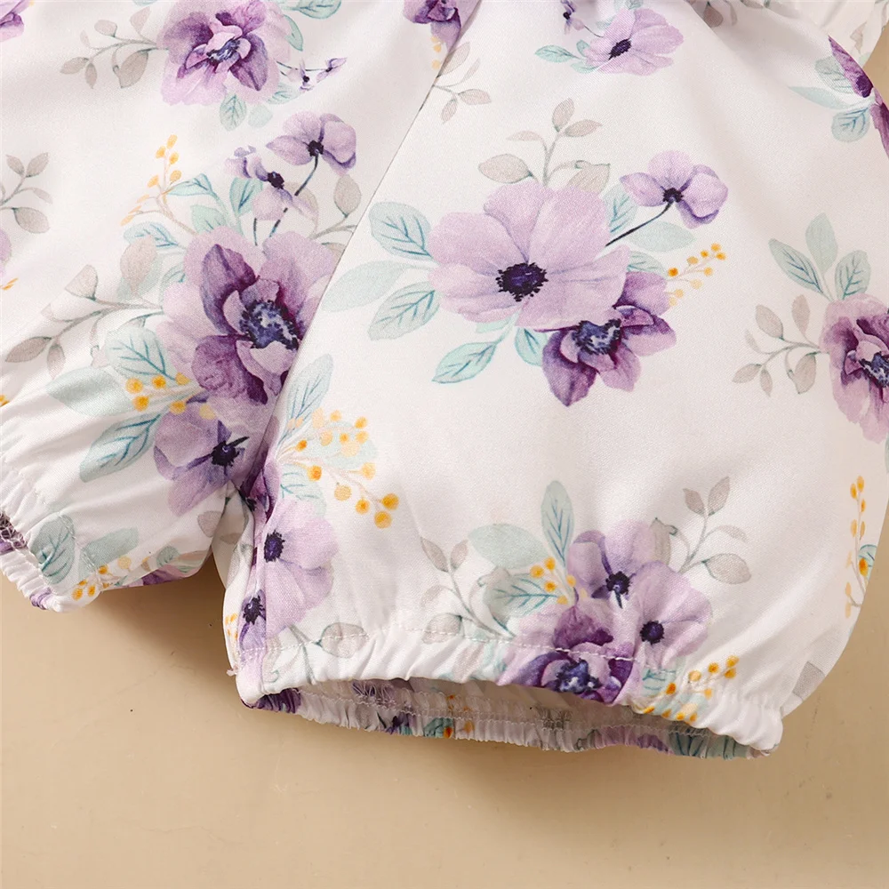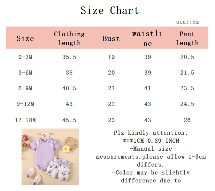 Baby Girl 3pcs Bodysuit, Printed Short, Bow Headband Clothing Set