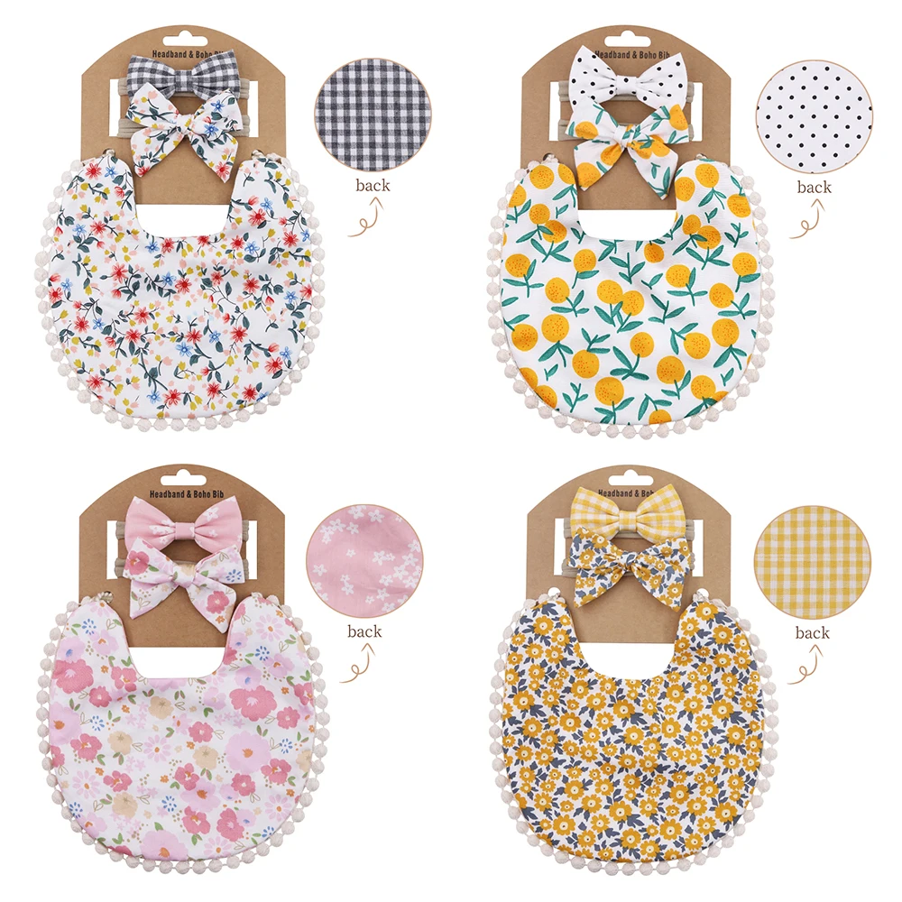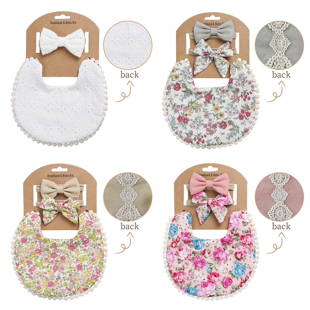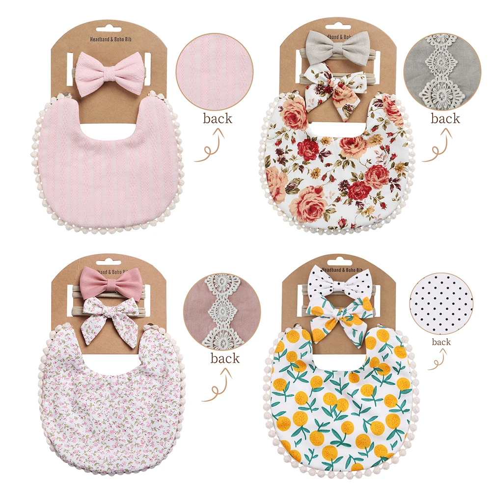 4Sets/Lot Floral Infant Burp Clothes with Bow Tie Headband