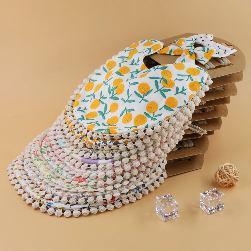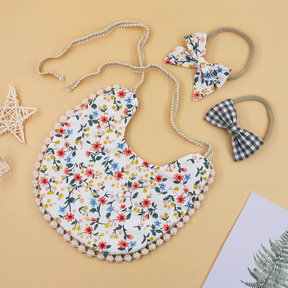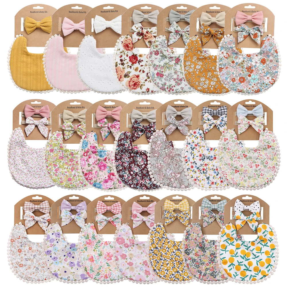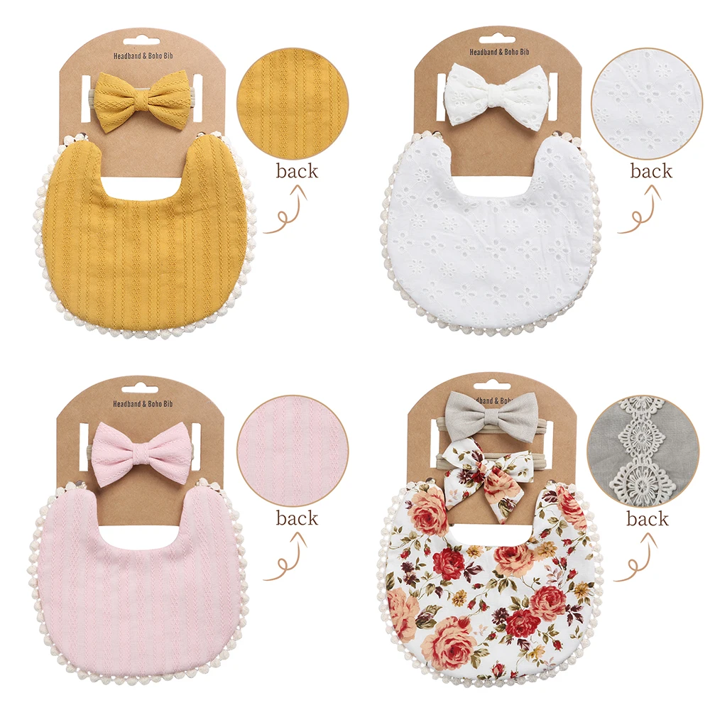 4Sets/Lot Floral Infant Burp Clothes with Bow Tie Headband