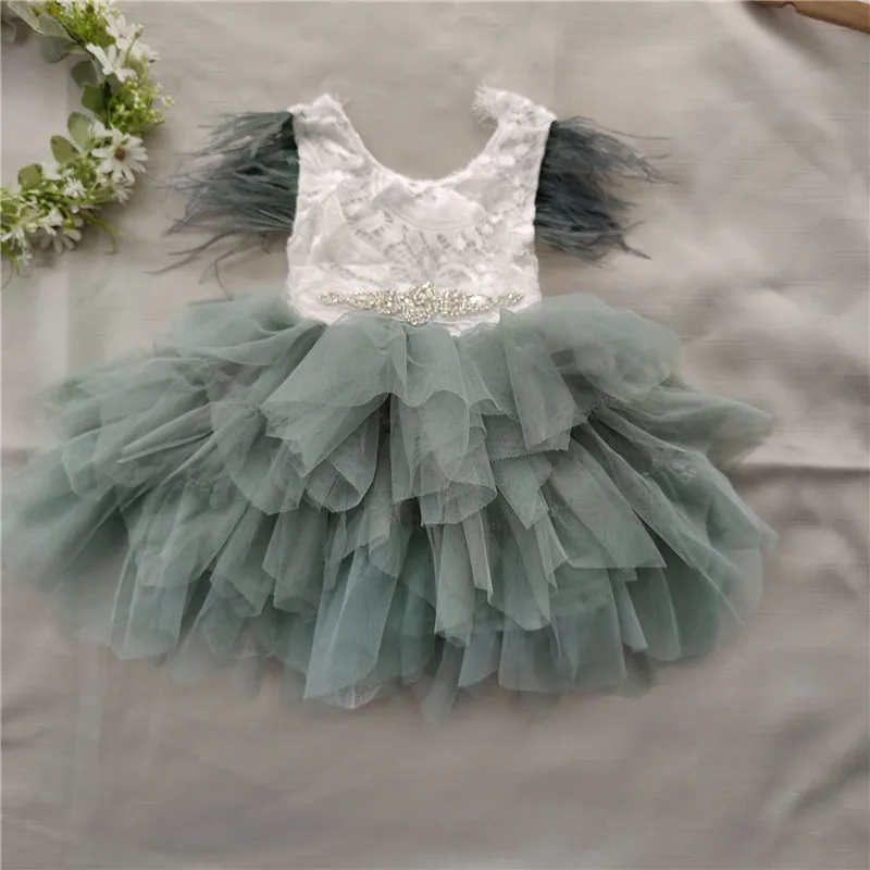 Baby/Kids Girl Tutu Lace Birthday Party Dress with Sashes