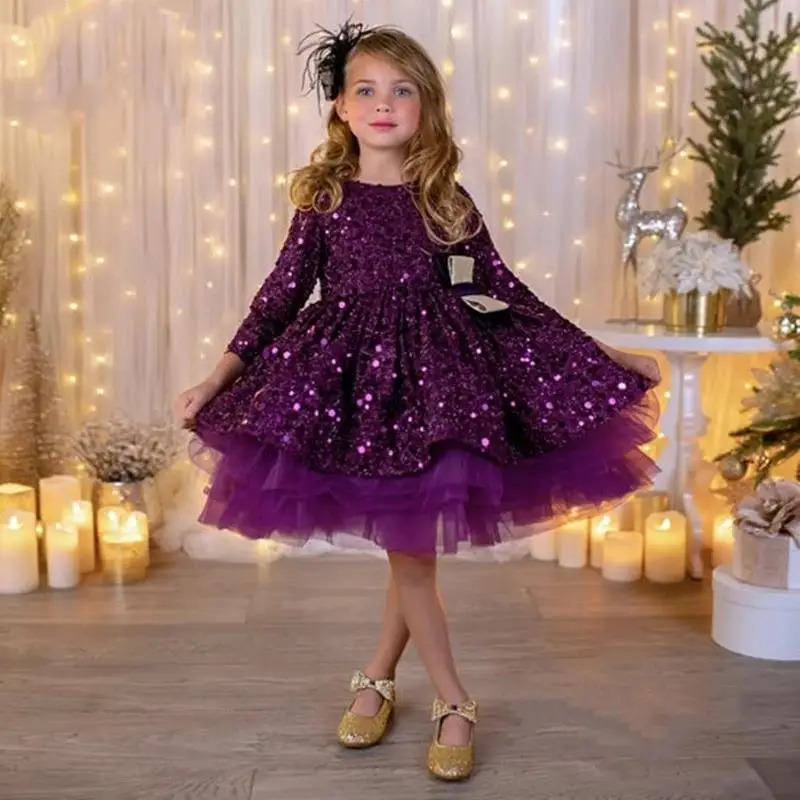 Elegant Fluffy Glitter Bowtie Birthday Wedding Dresses for Girls