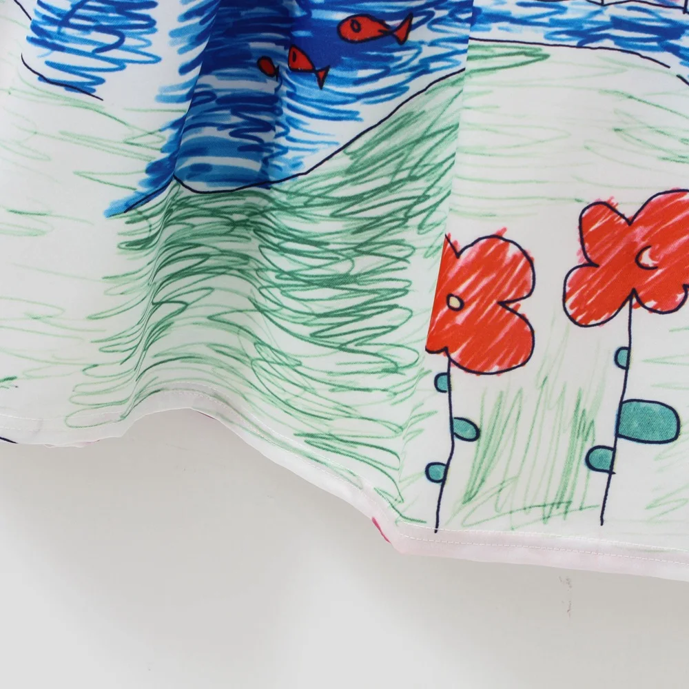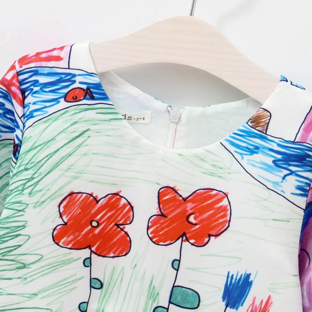 Flower Birds Printing Long Sleeve Princess Girl Dresses