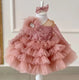 Organza Fluffy Red Sequined Baby/Kids Girl Dress for Photoshoot