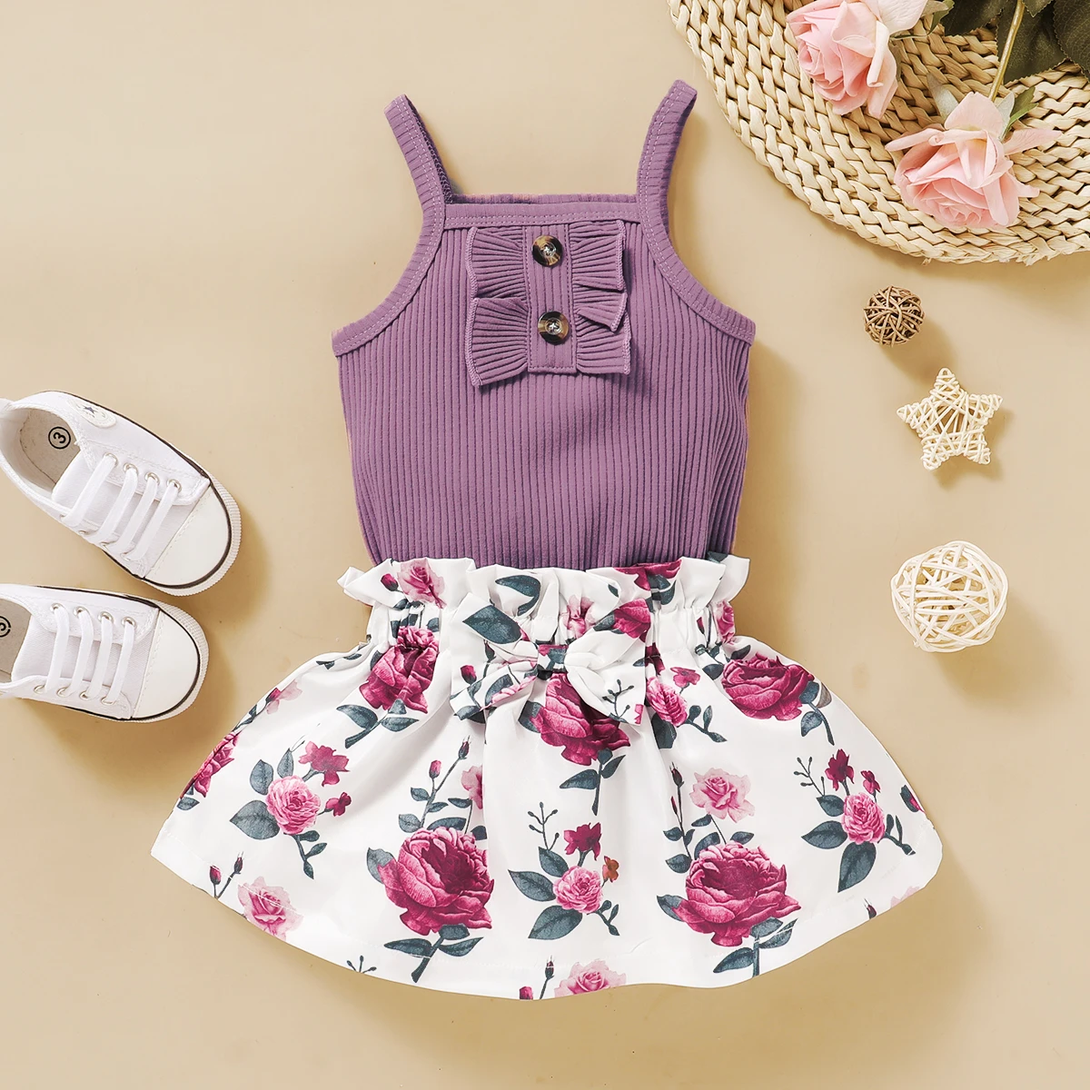 Romper & Floral Skirt Baby Girls 2pcs Outfit Sets