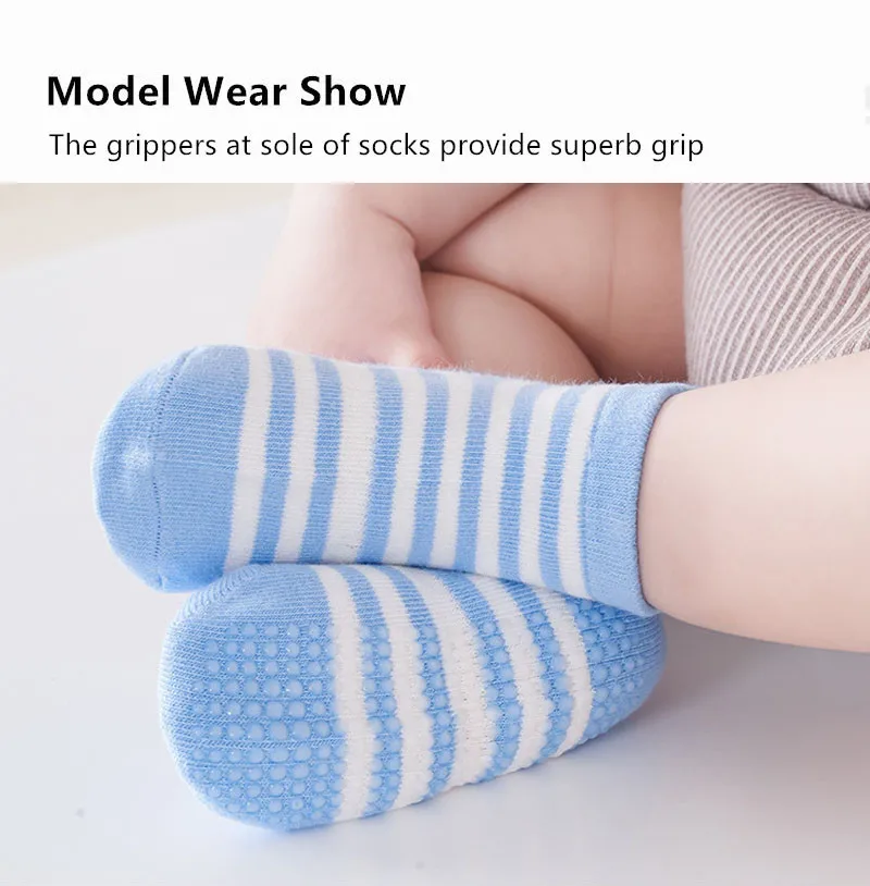 These cotton socks feature rubber grips that keep little feet safe from slips on slick floors. Designed for boys and girls, they’re great for everyday fun and casual wear. Made with comfy polyester, these socks feel gentle and cozy all day. Breathable yet warm, they keep your child comfortable as the seasons change. This pack gives you plenty of fresh, non-slip socks ready for every adventure!