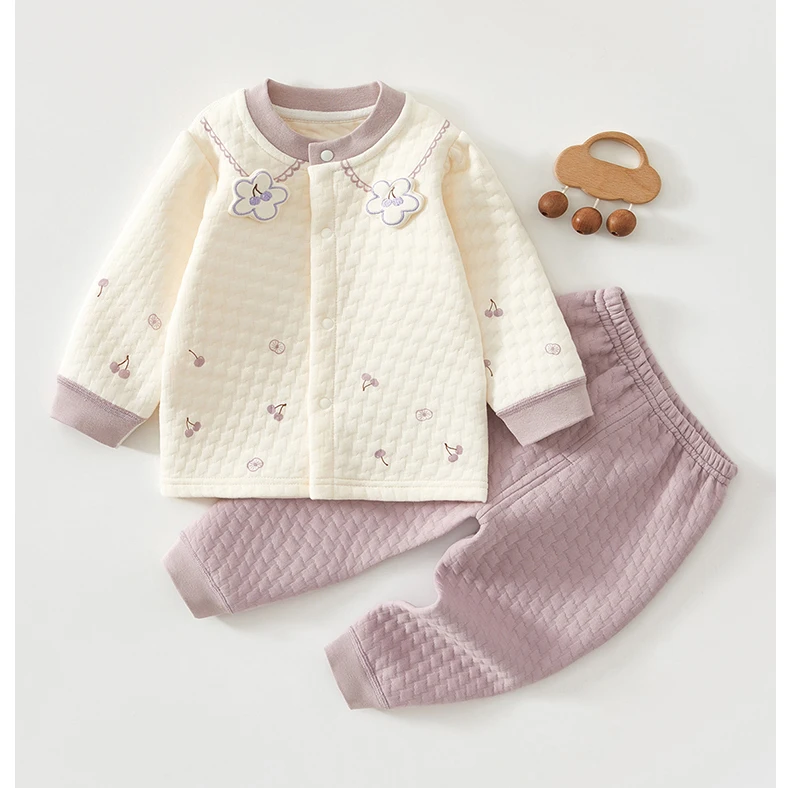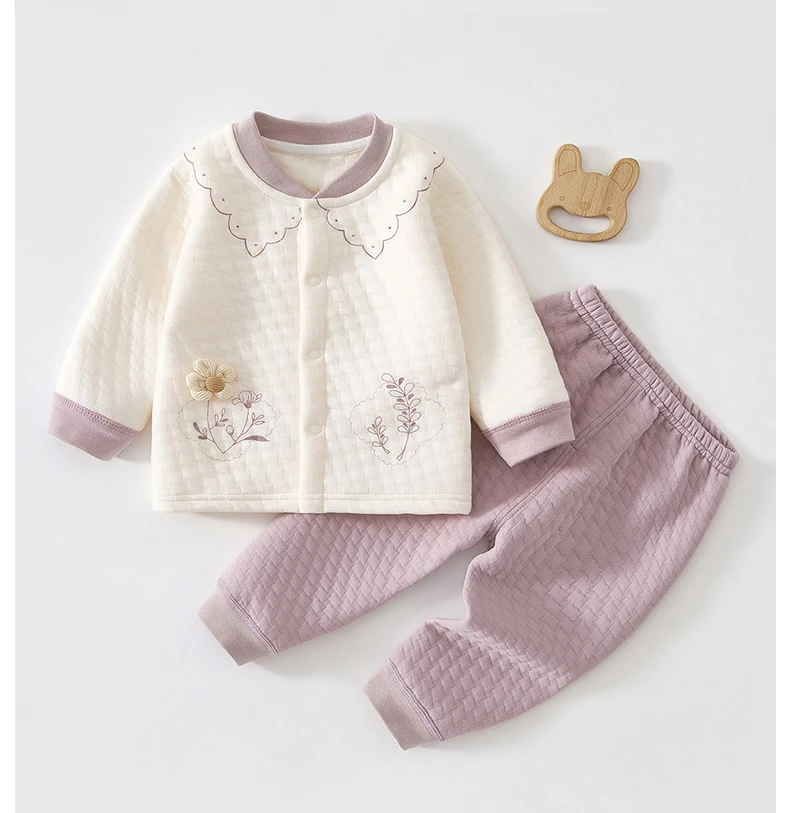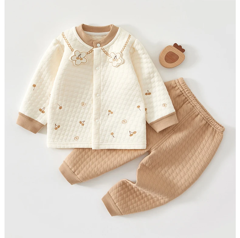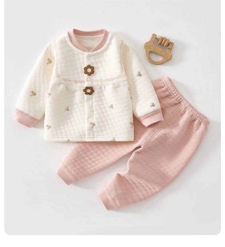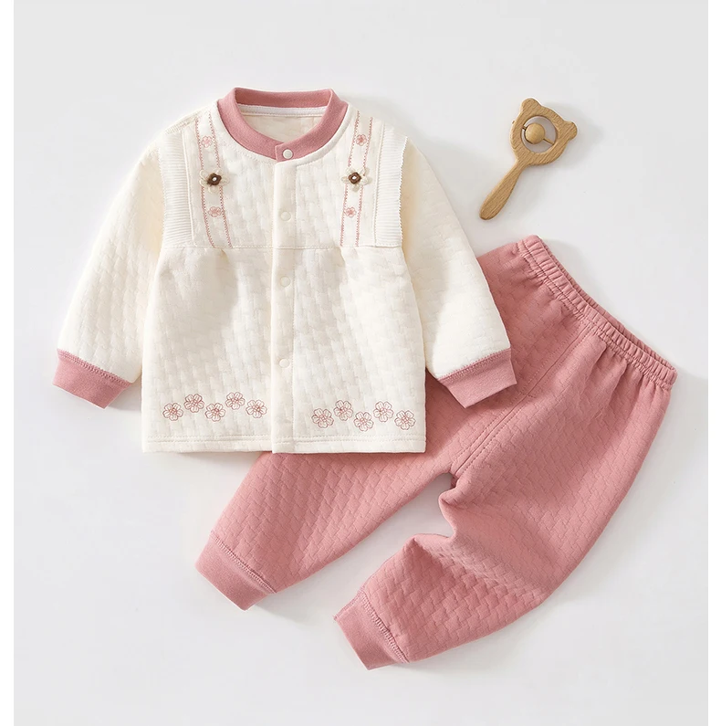 Baby Kids Long Sleeves Flower Design Winter Outfit Sets