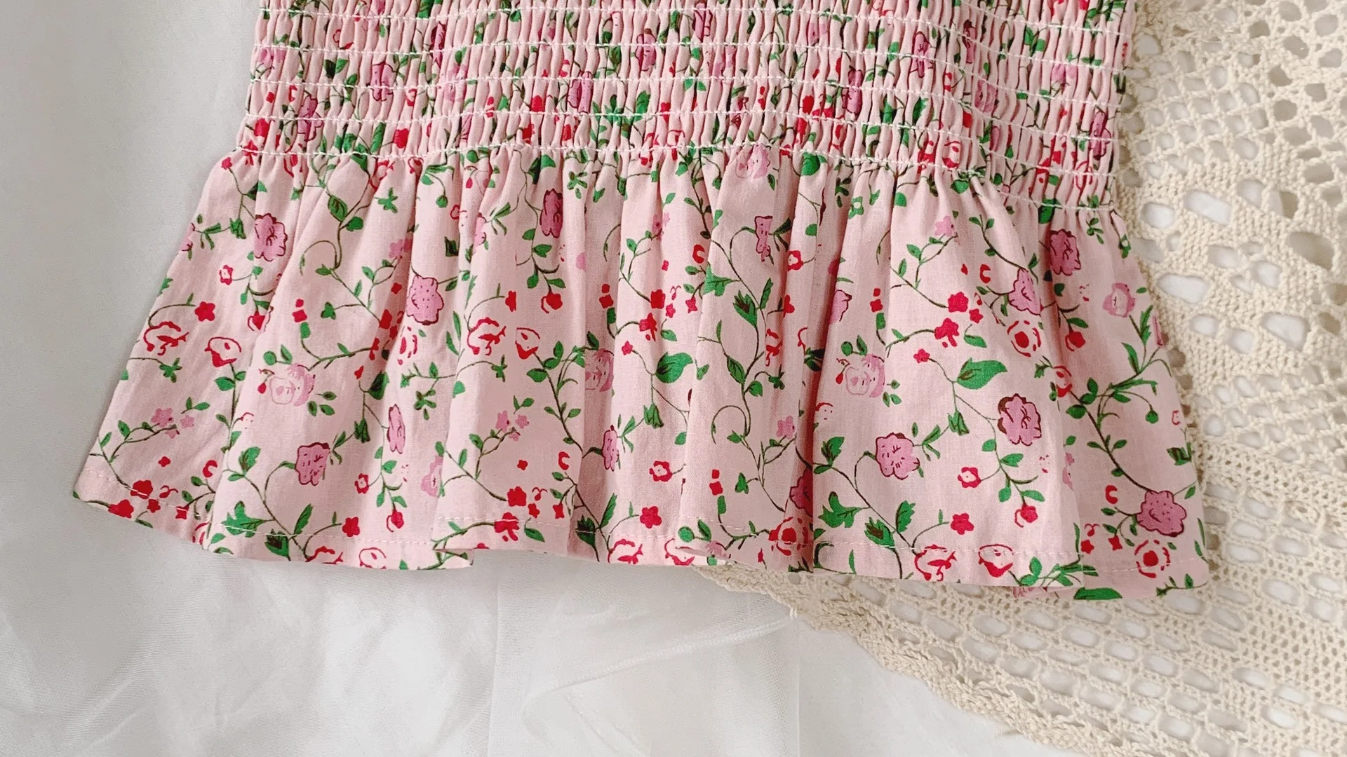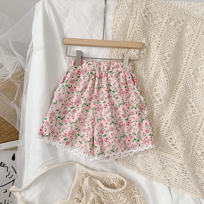 Floral Print Rustic Style Little Girl Sling Tops and Shorts Set