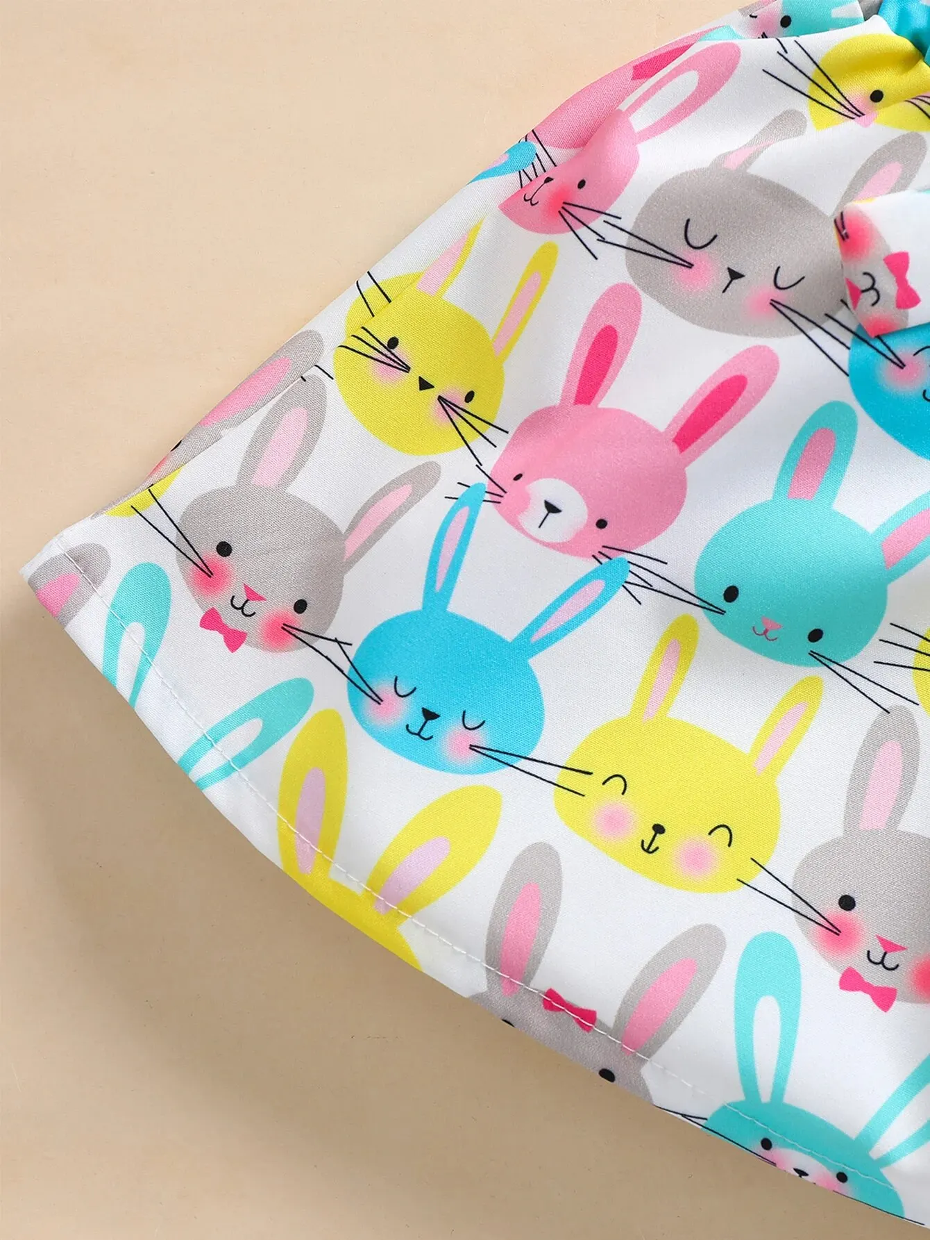 "Happy Easter" Print Little Girls Summer T-shirt & Skirt Set