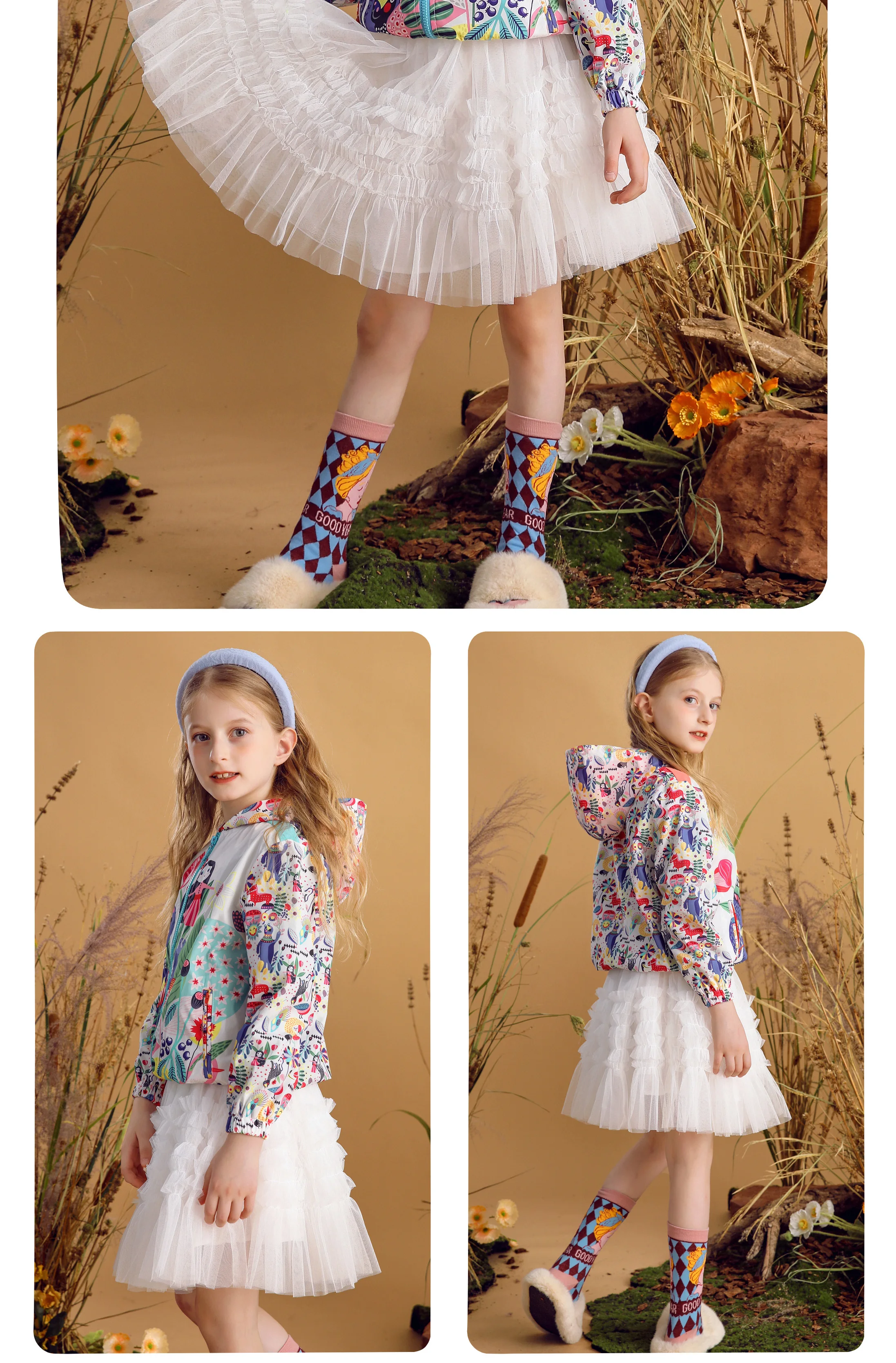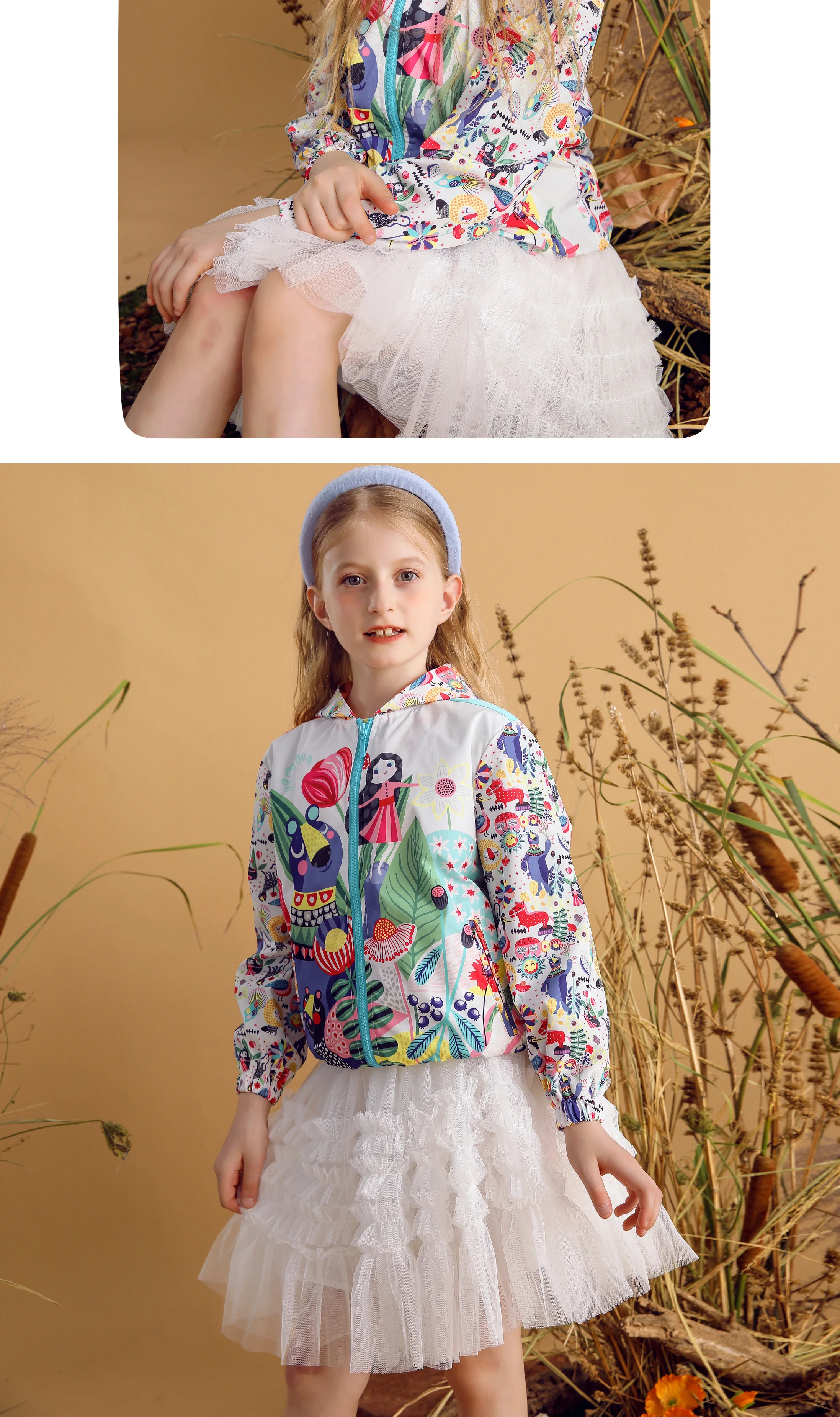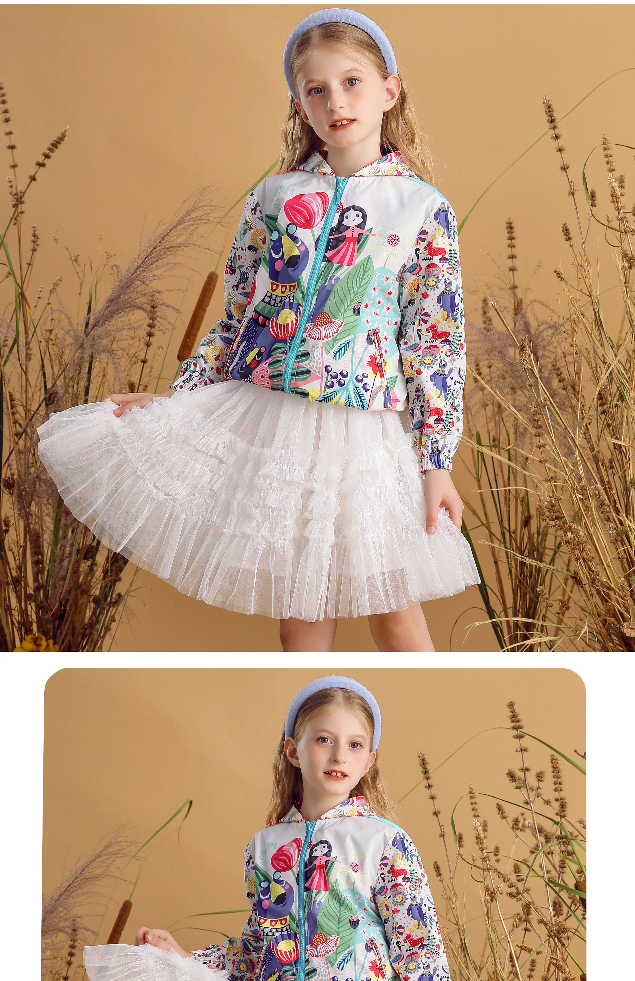 Kids Girl Printed Hooded Jacket and Elastic Waist Pant Set