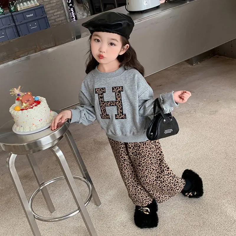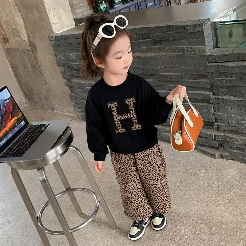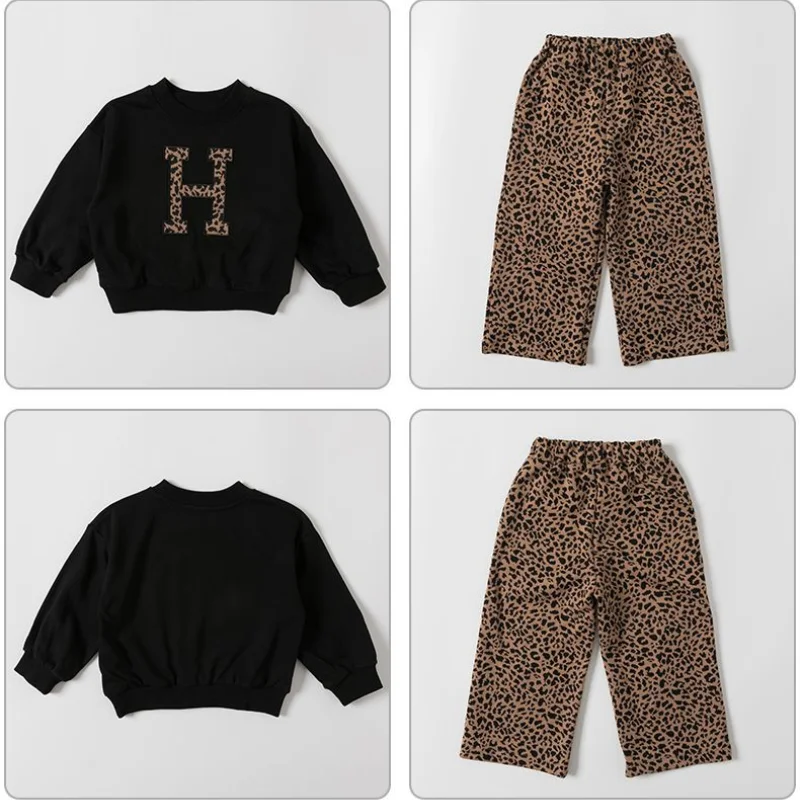 Kids Girls Leopard Letter Printed 2pcs Suit Set