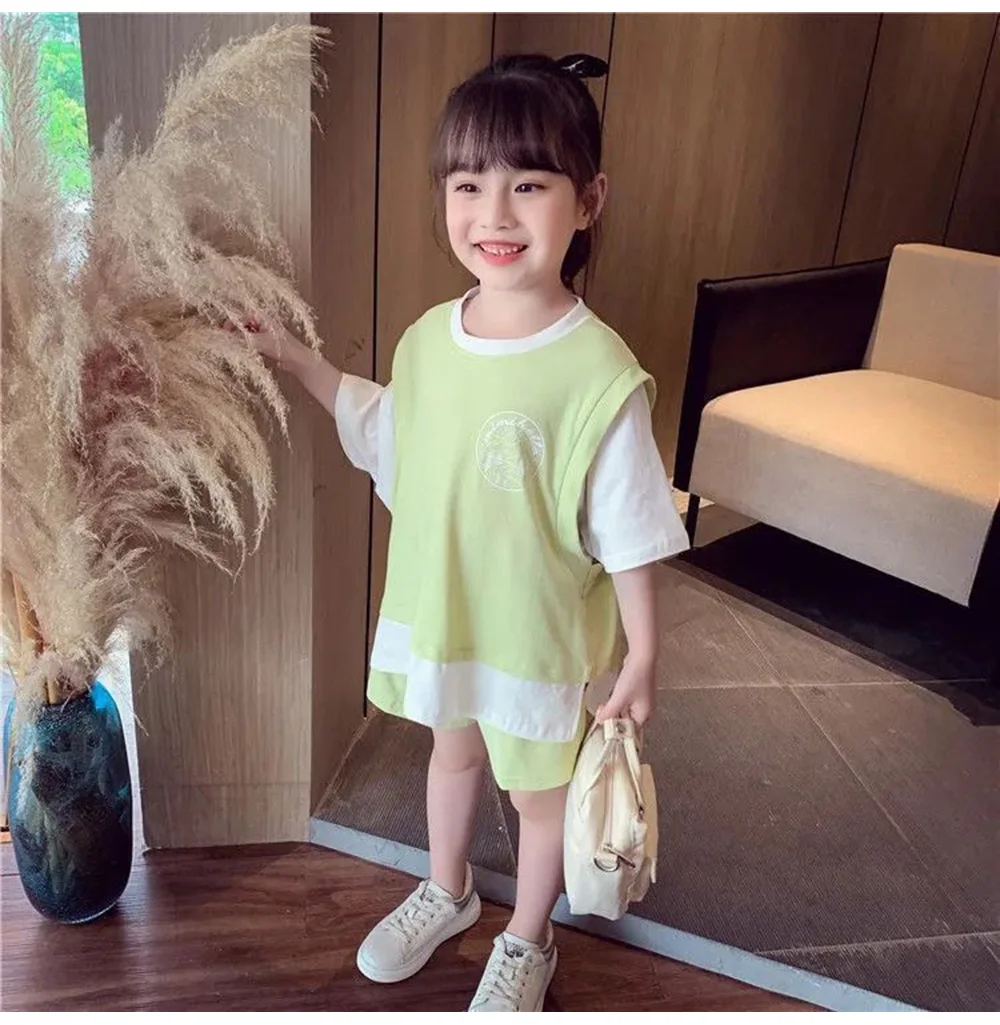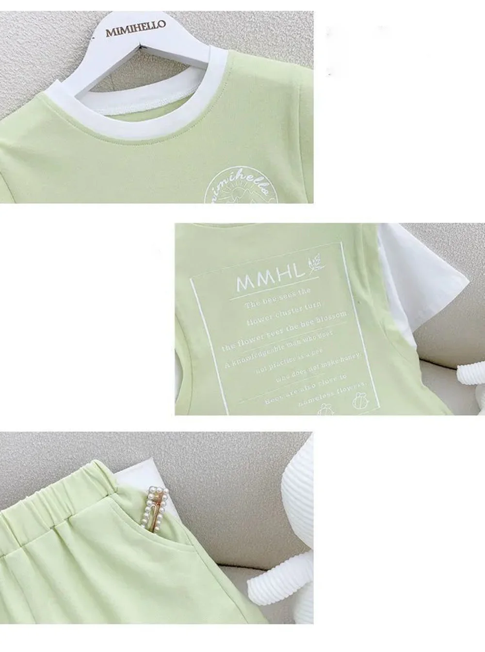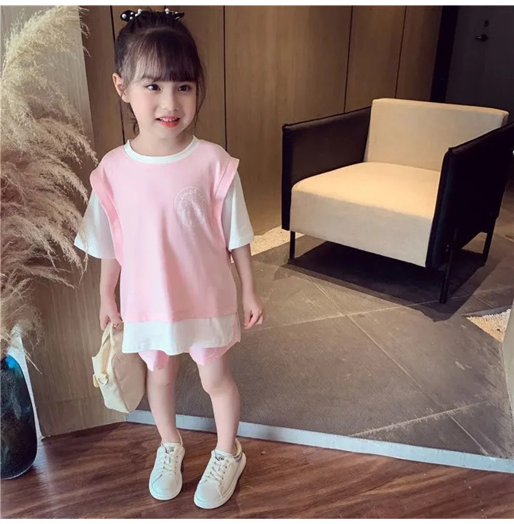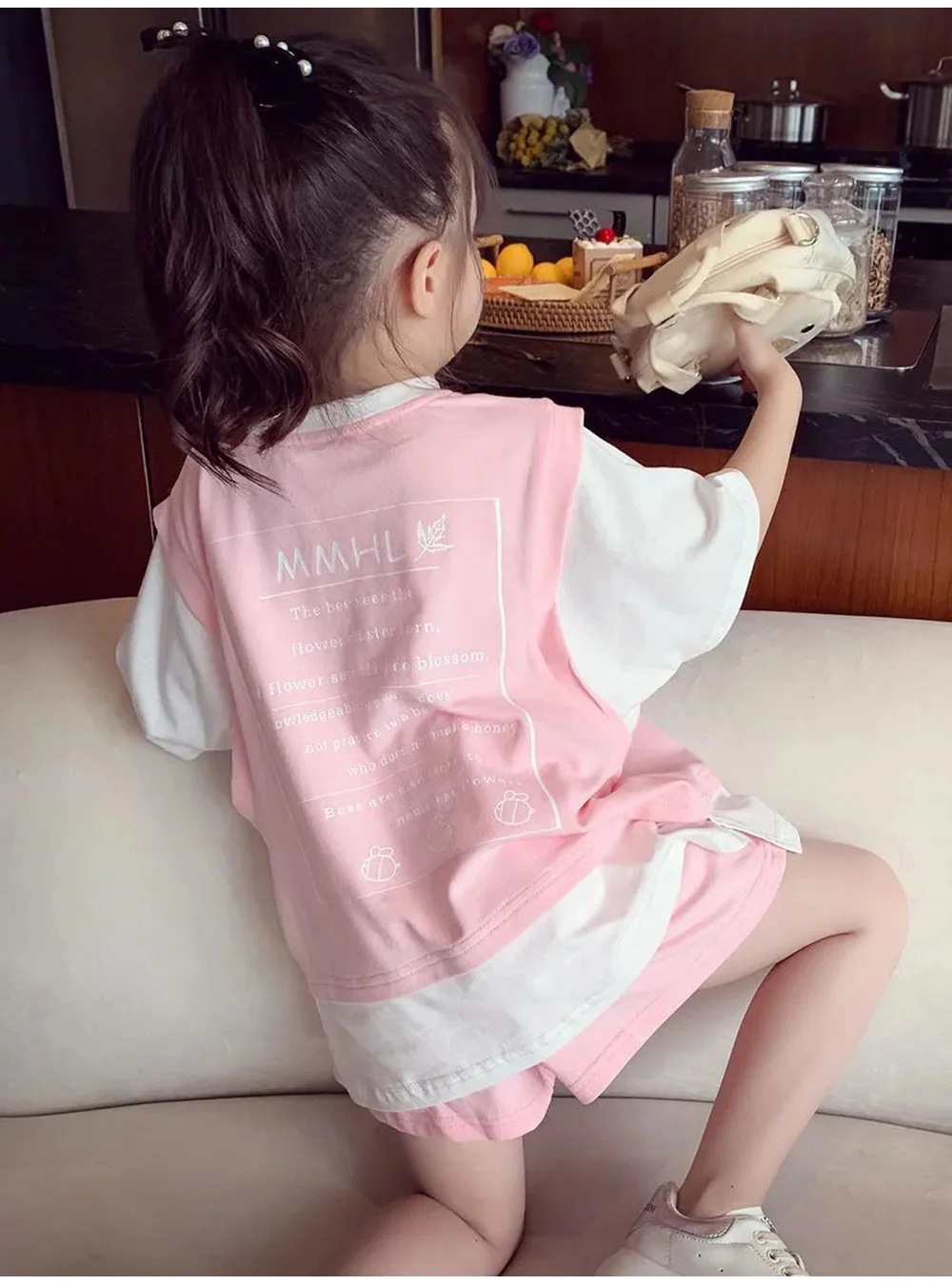 Kids Girls Patchwork Tops & Shorts Casual Clothing Set