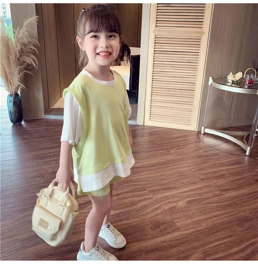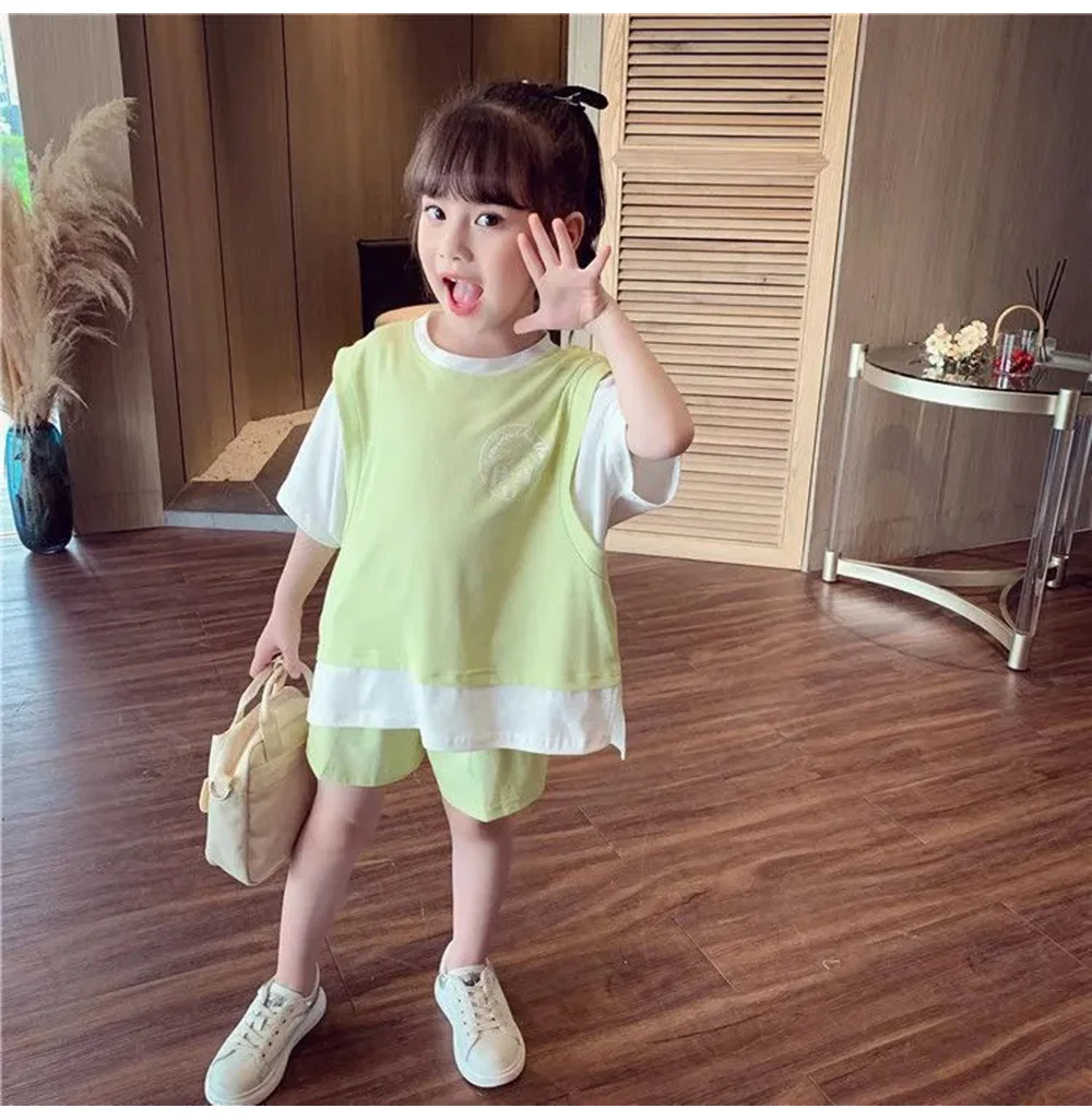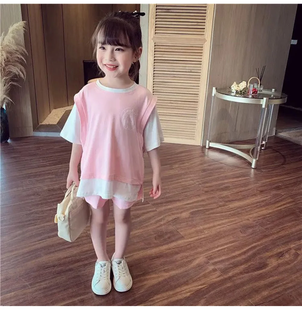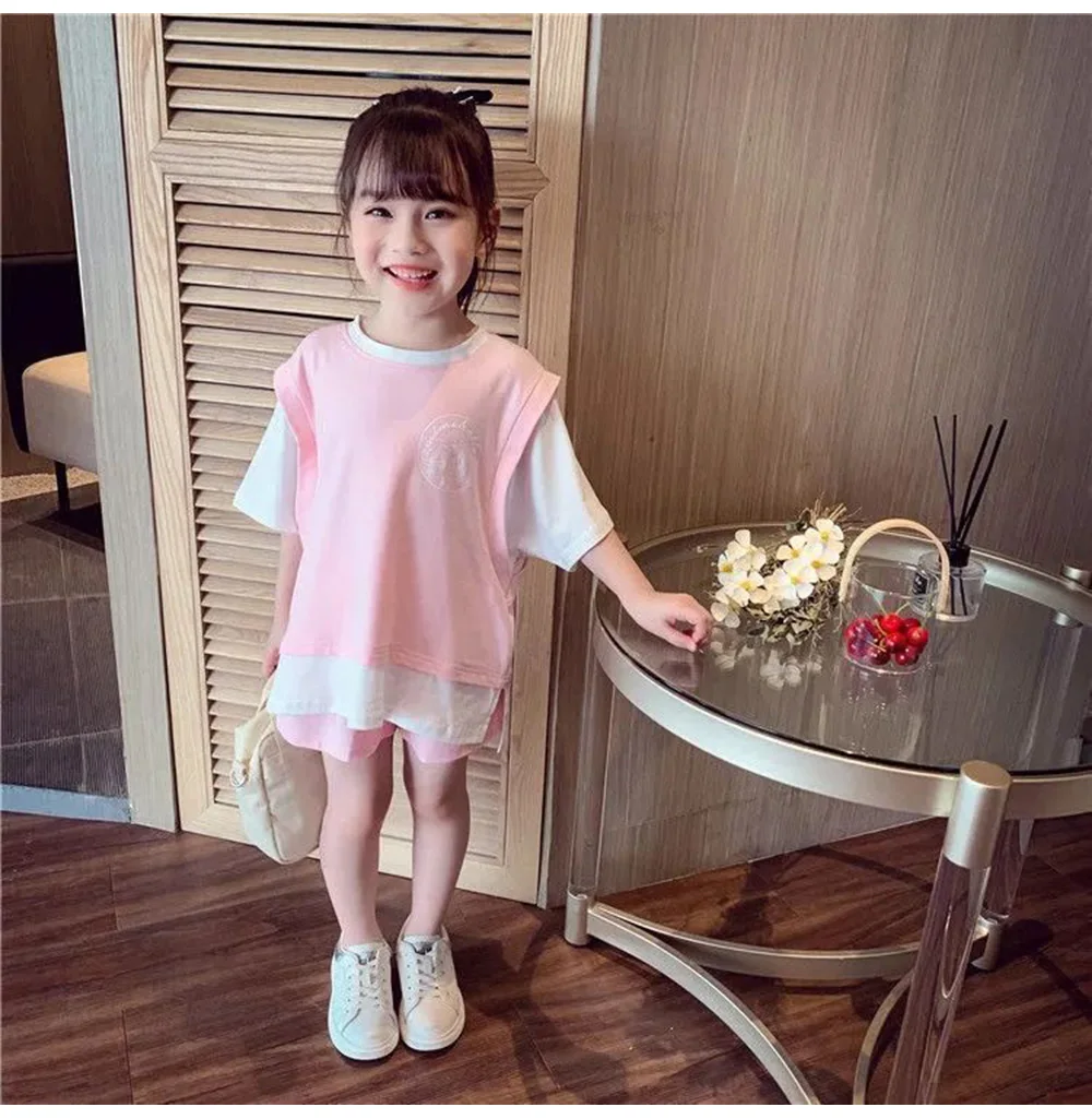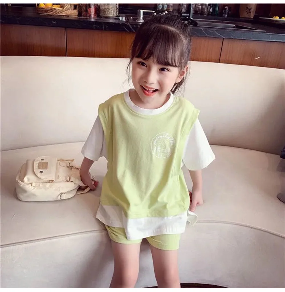 Kids Girls Patchwork Tops & Shorts Casual Clothing Set
