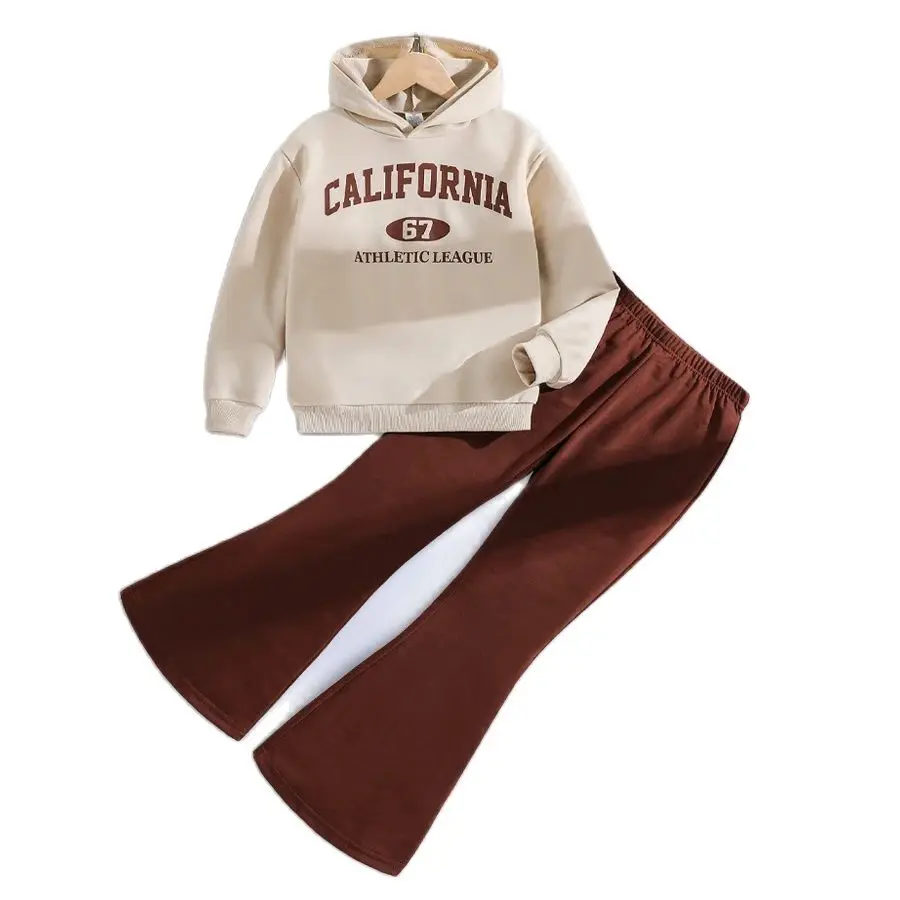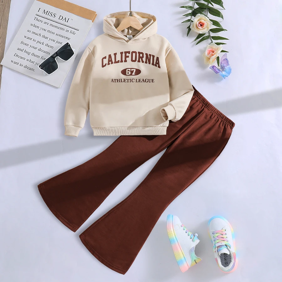 Kids Girls' Sports 2-piece Hoodie + Wide Leg Pants Outfit Set