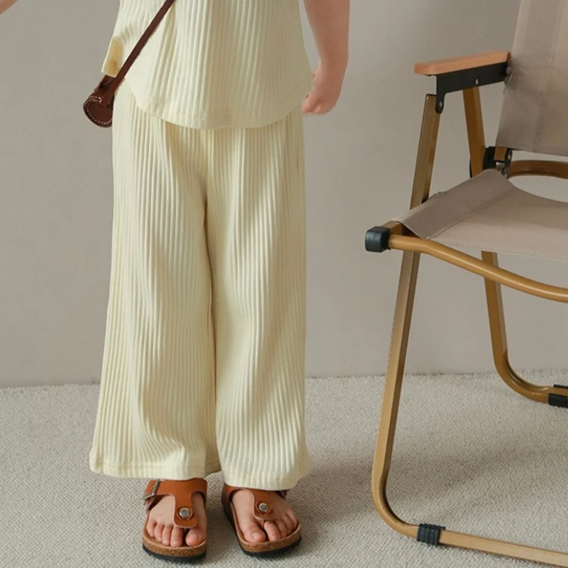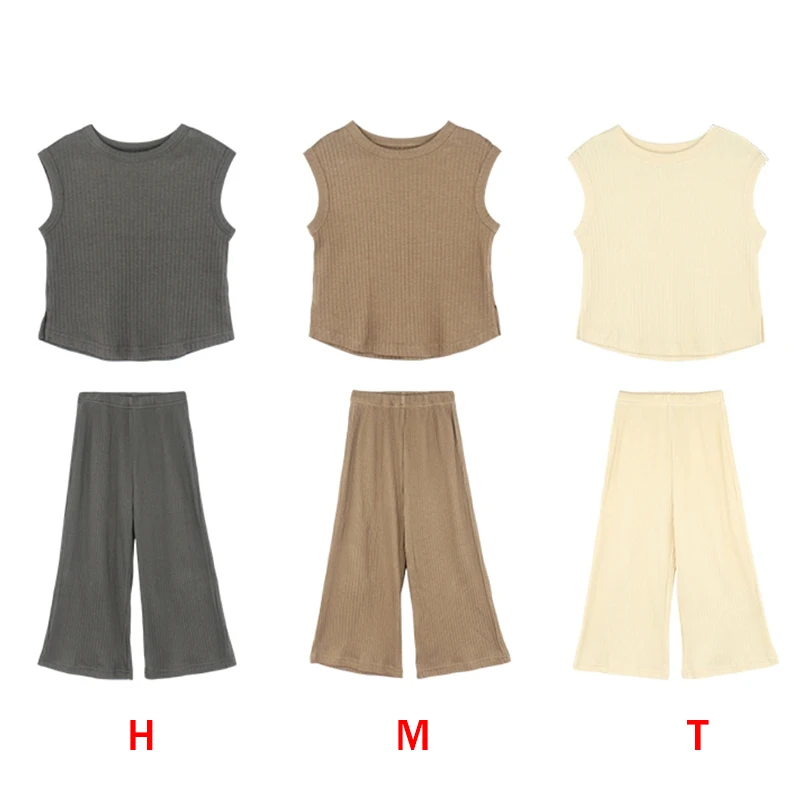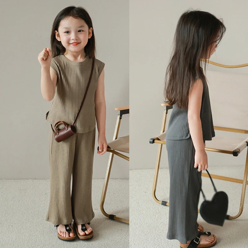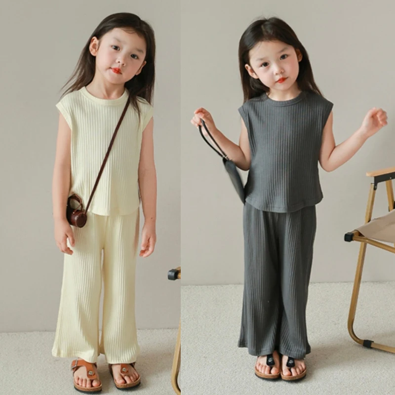 Kids Girls Summertime Sleeveless T-Shirt + Trousers Casual Outfit Set