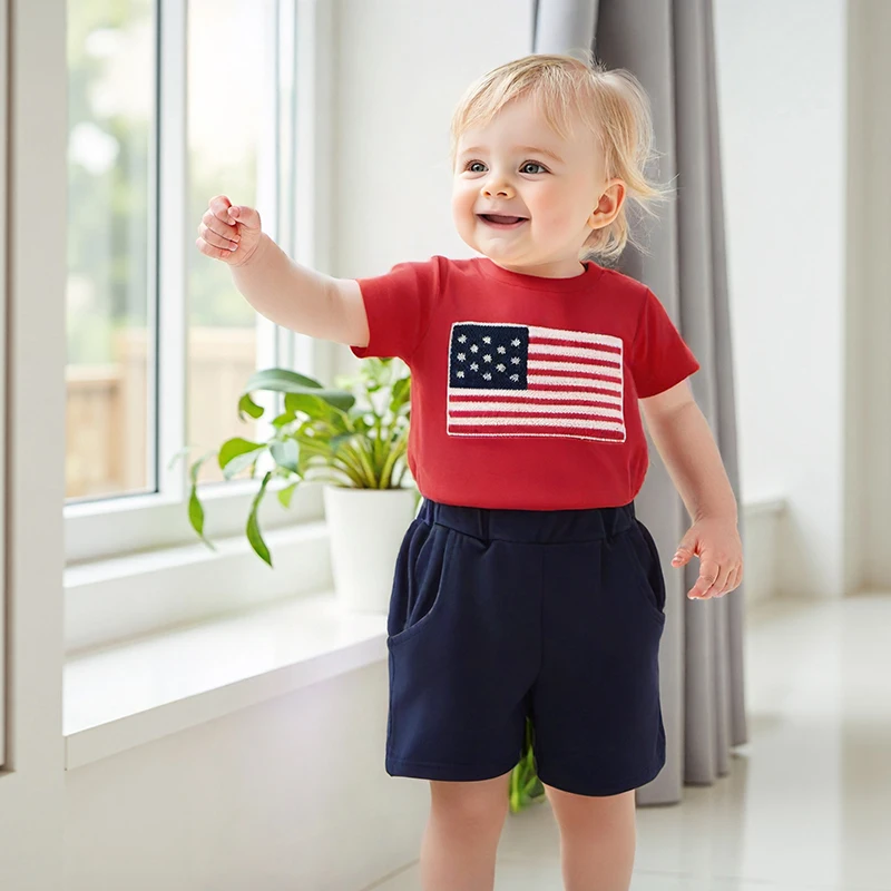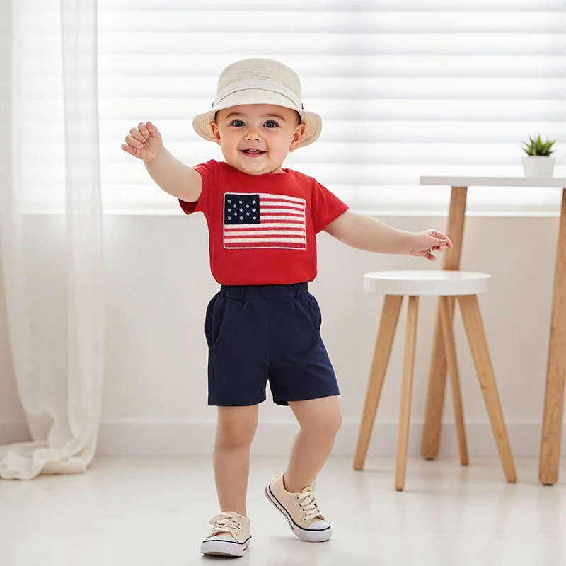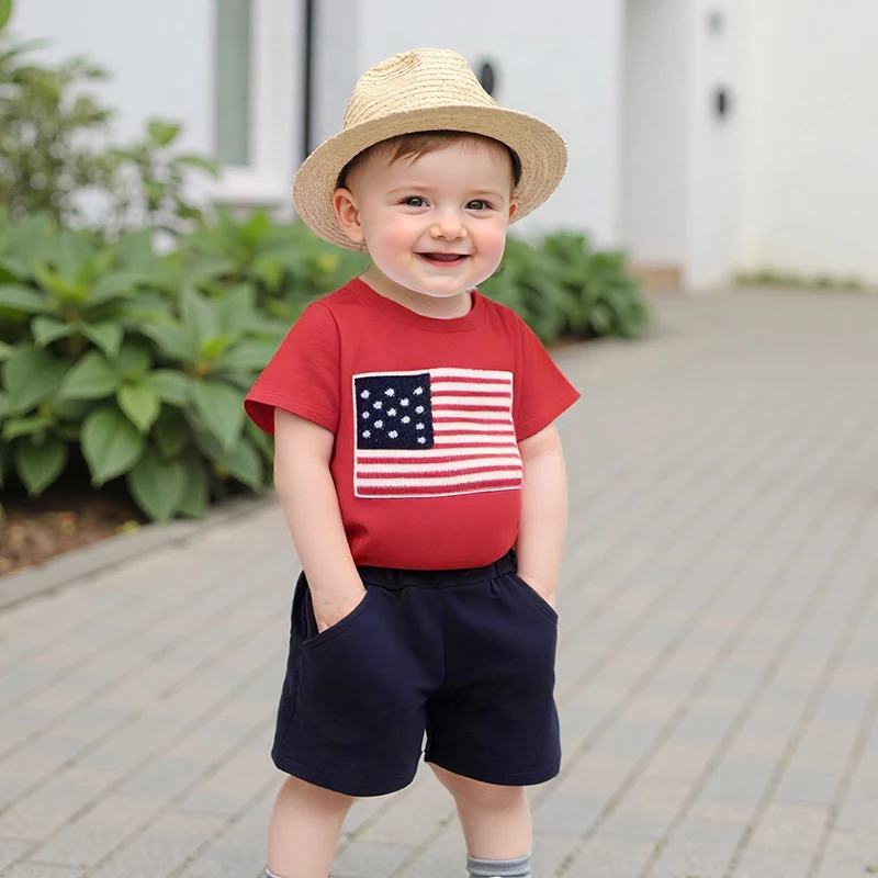 National Flag Letter Print Baby Boy Summer Outfits