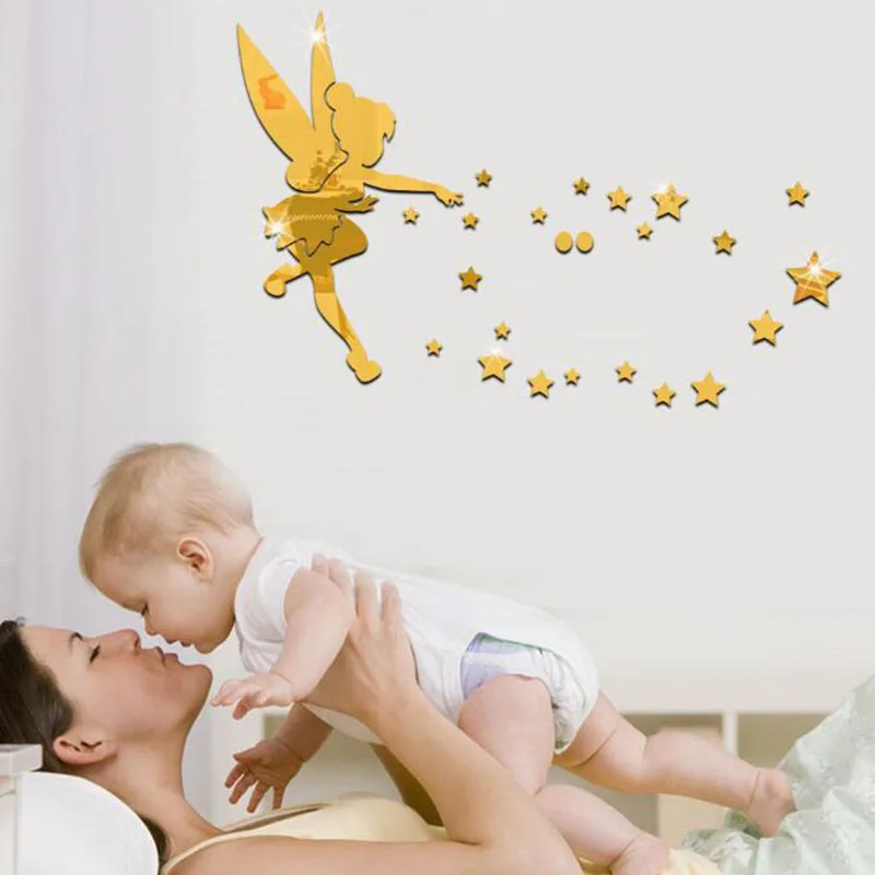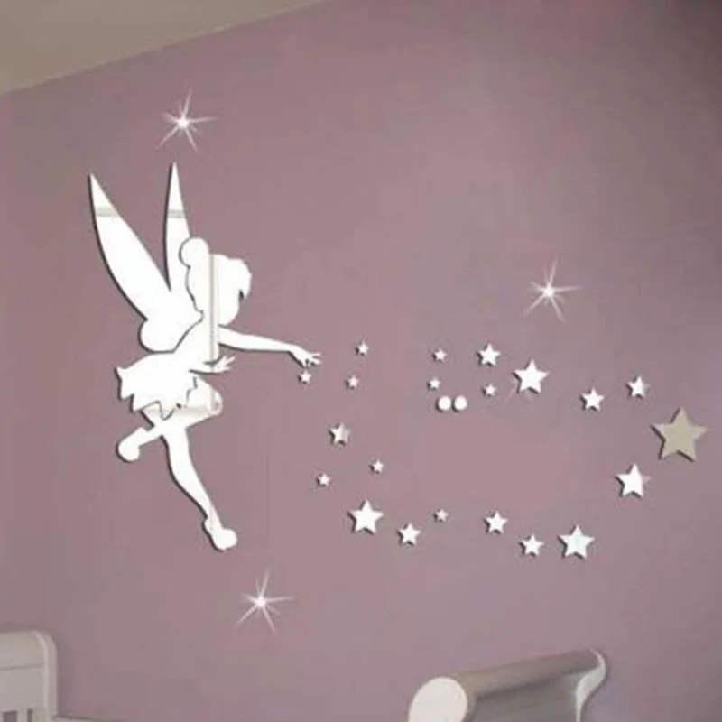 Fairy Blowing Stars Acrylic Mirror Wall Sticker for Home