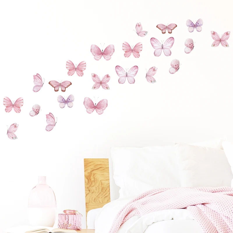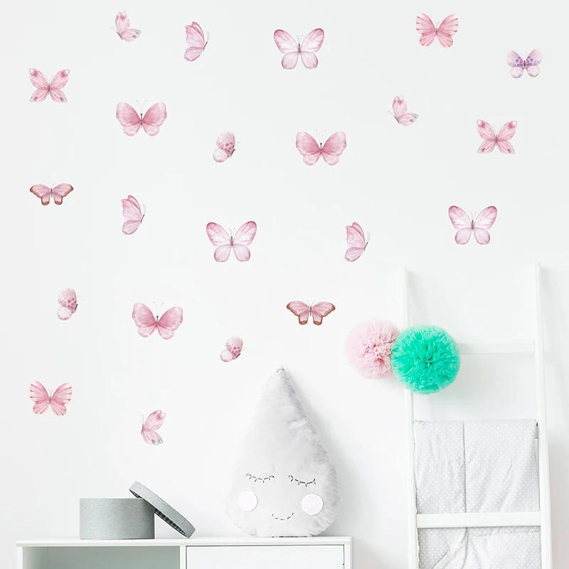 Add a touch of whimsy to your child's room with these pink butterfly wall decals. Made from translucent, eco-friendly material, they blend seamlessly on pure color walls. Easy to apply and remove, they’re waterproof and mildew-proof—perfect for a playful, worry-free space. Plus, they leave no marks behind, making room makeovers fun and simple!