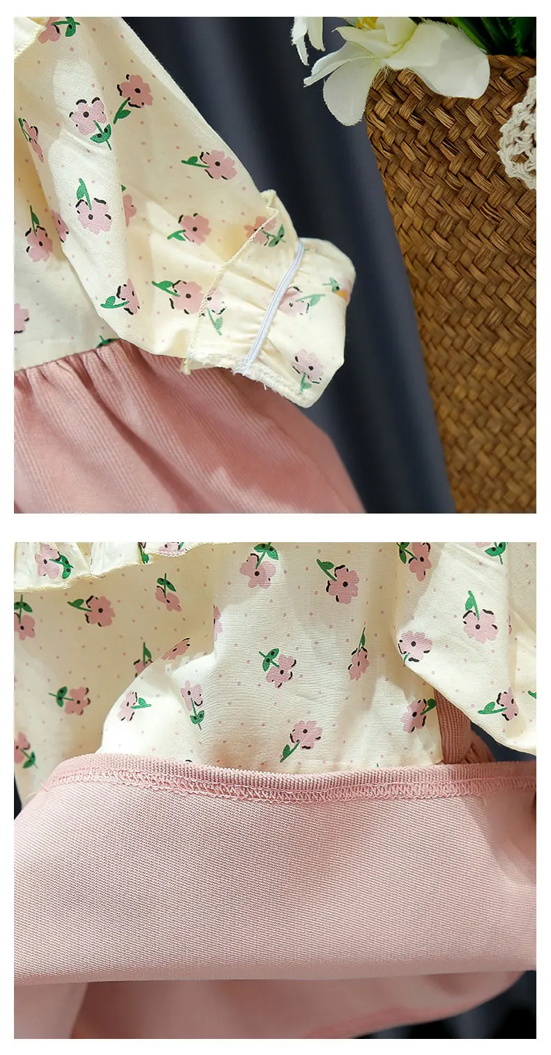 Girls' Long-Sleeved Flower Design Winter Dresses