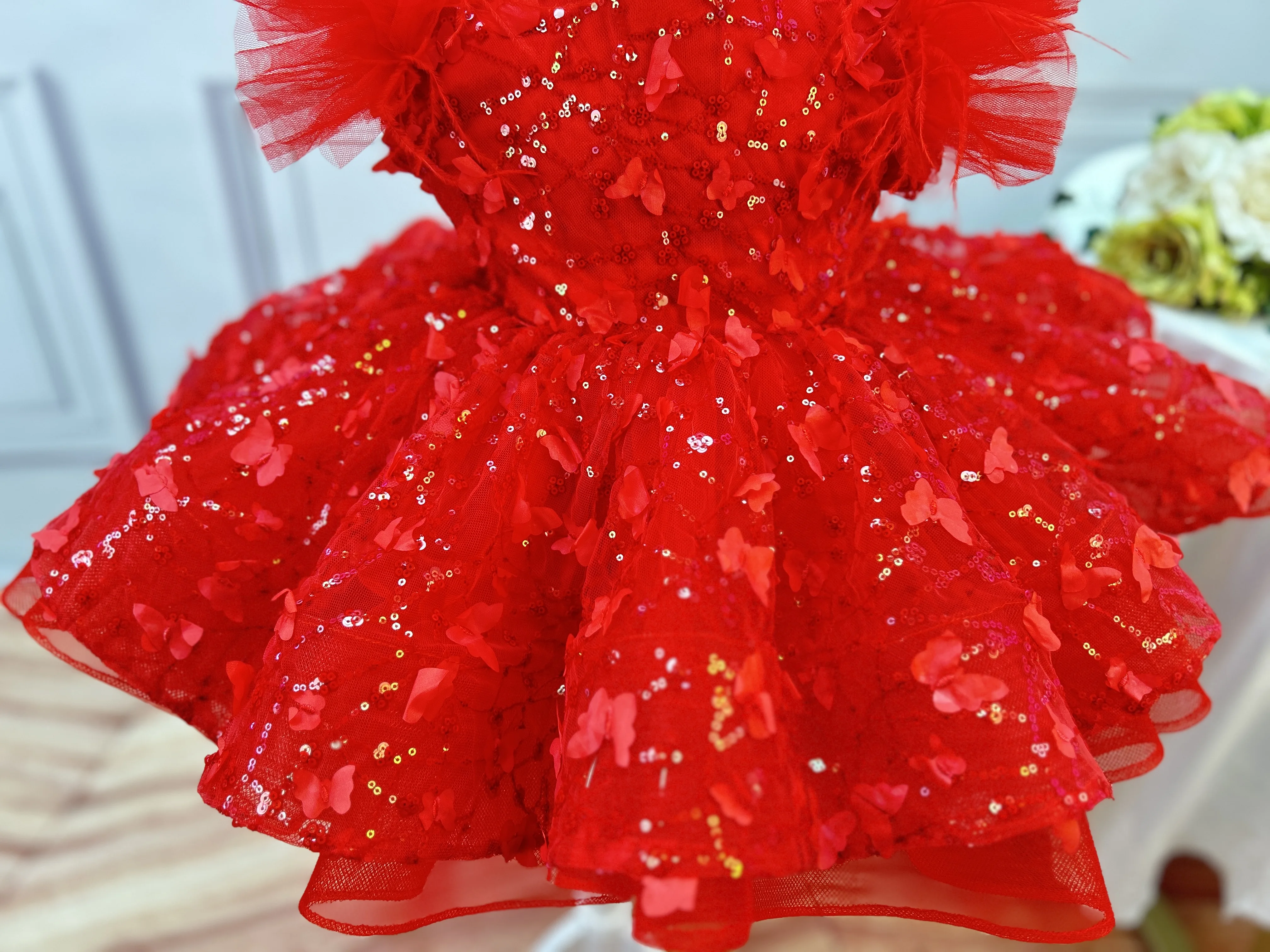 Girls Long Sleeves Butterfly Design Fluffy Party Dresses