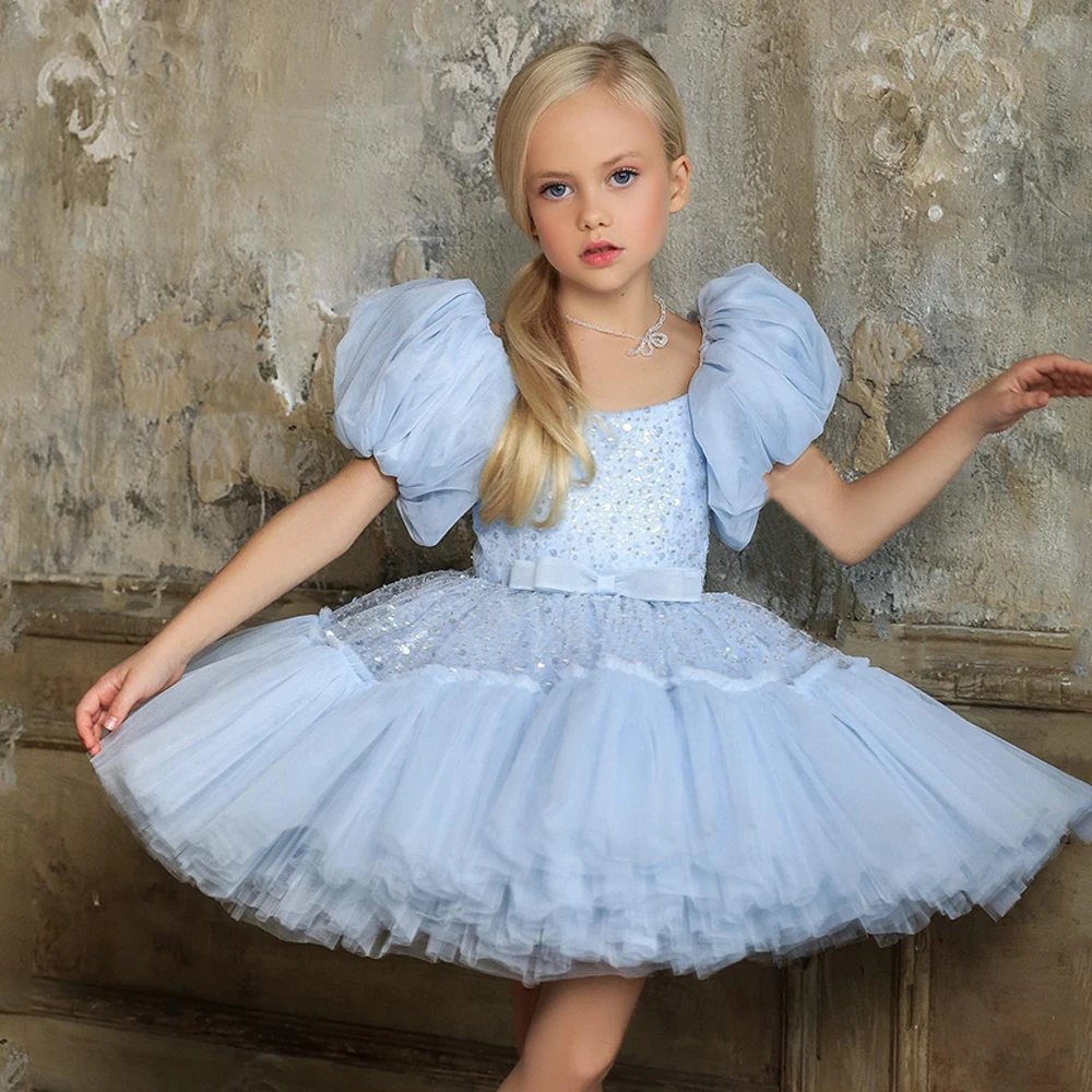 Kids Girls Puff Sequin Princess Dress/Communion Dress