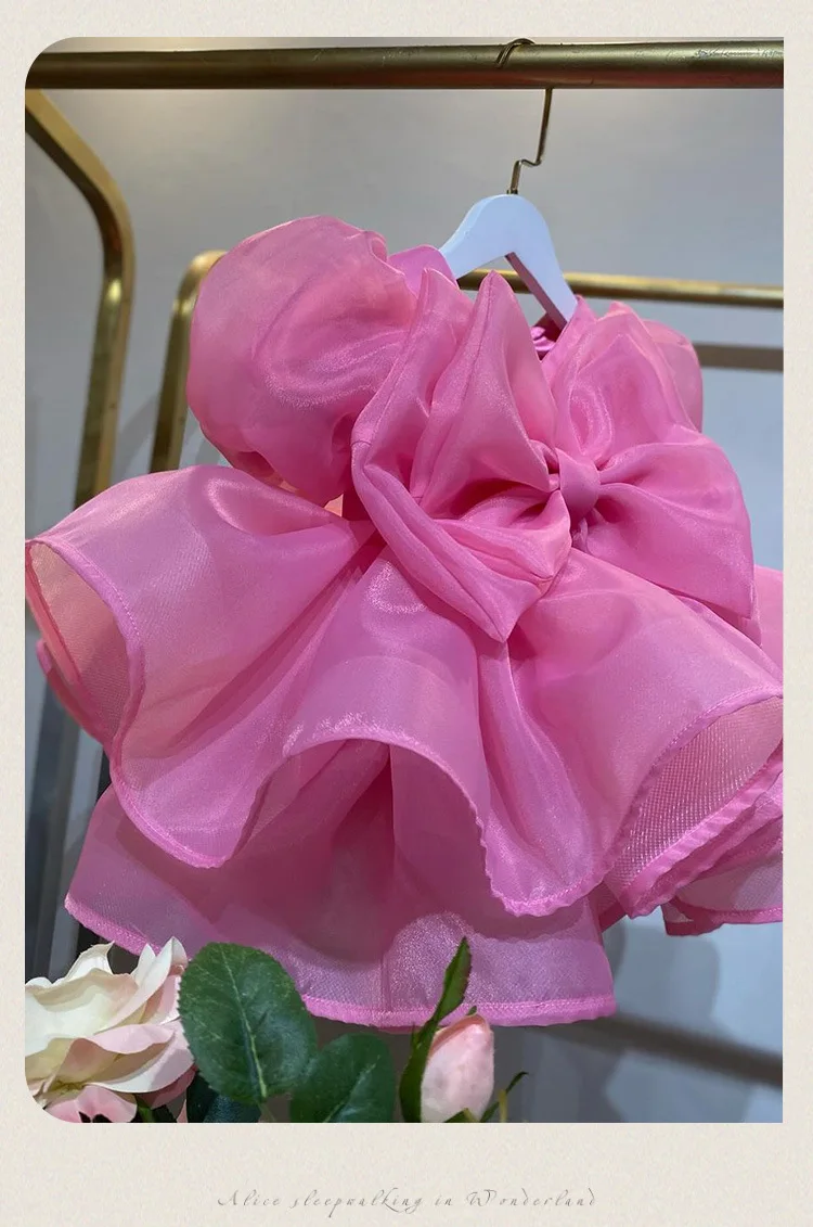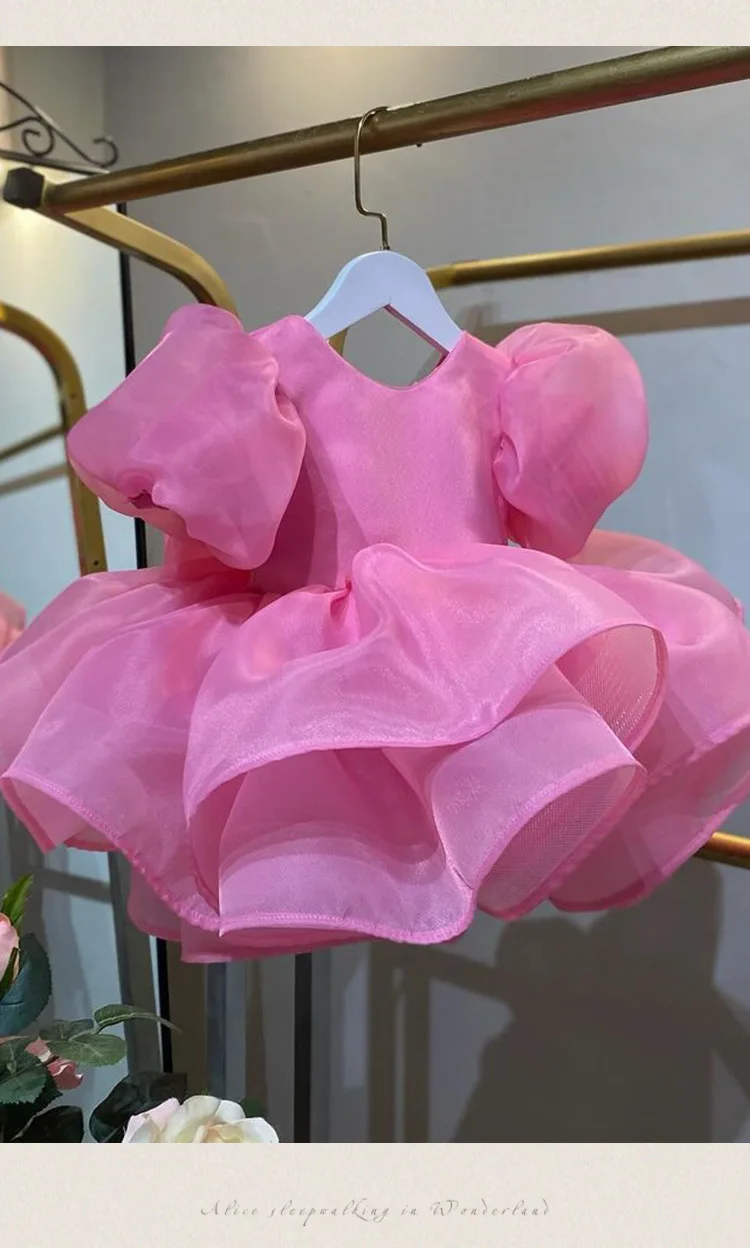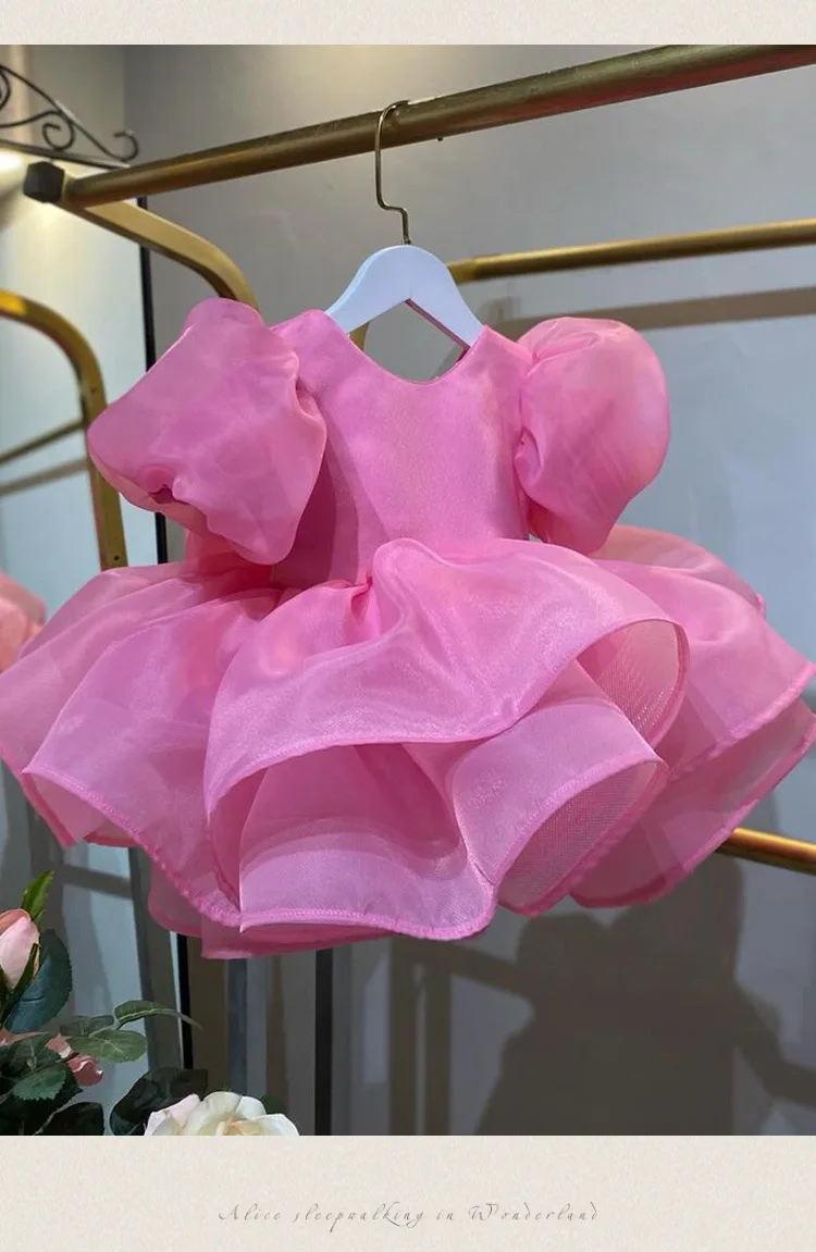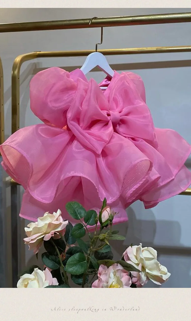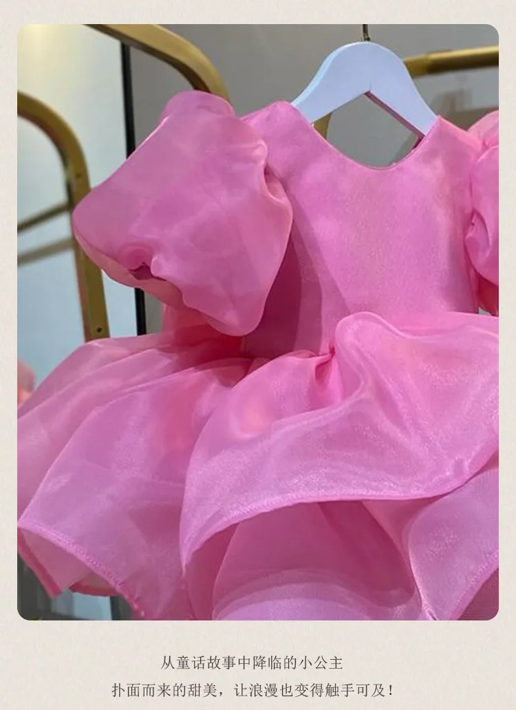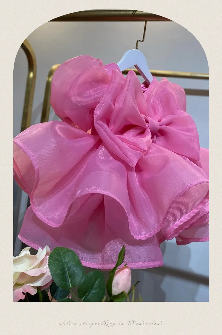 Kids Girls' Puffy Tulle Back Bow Puff Sleeve Princess Dress