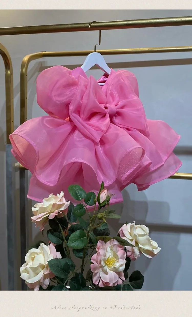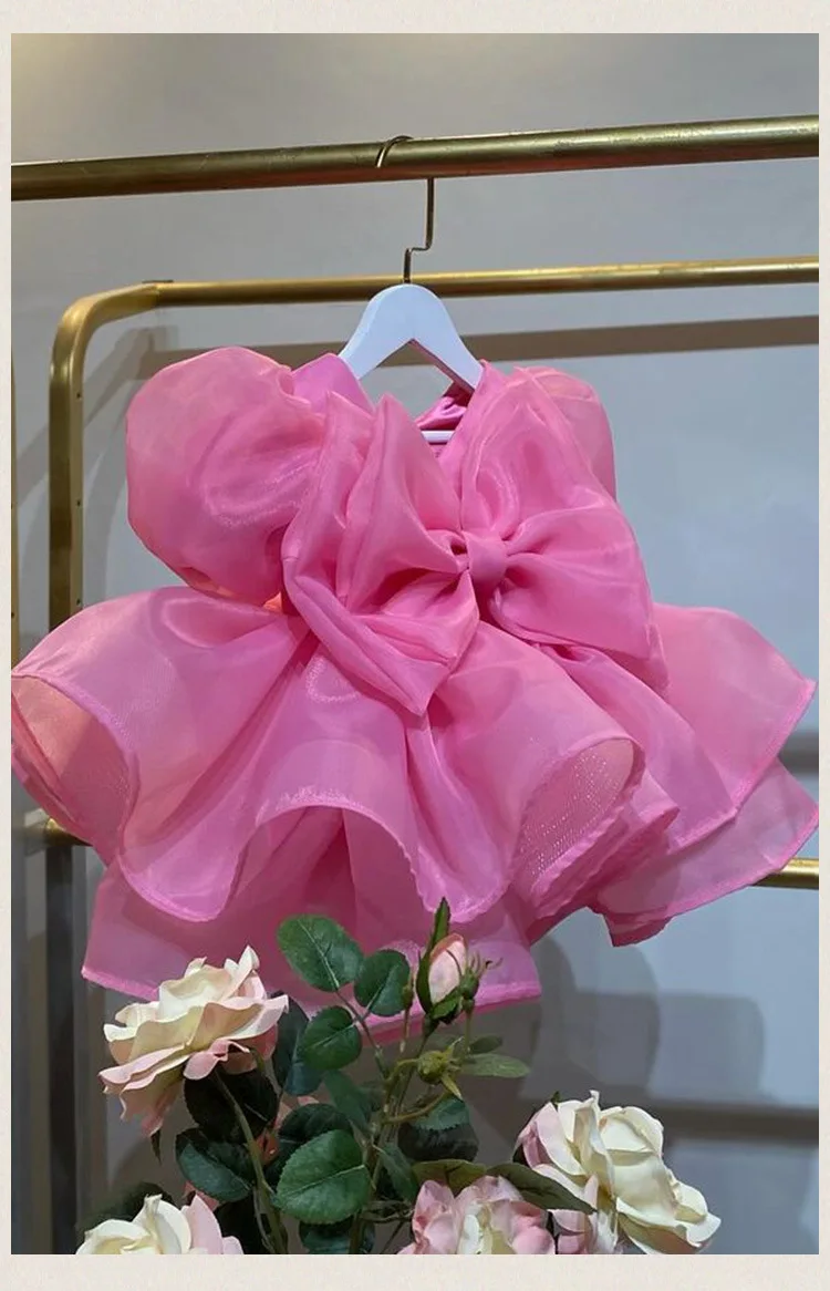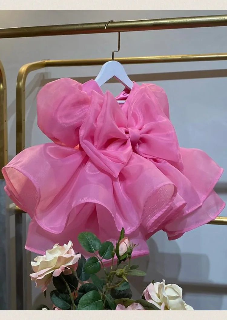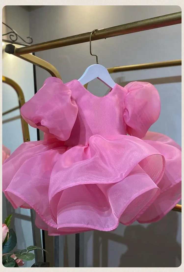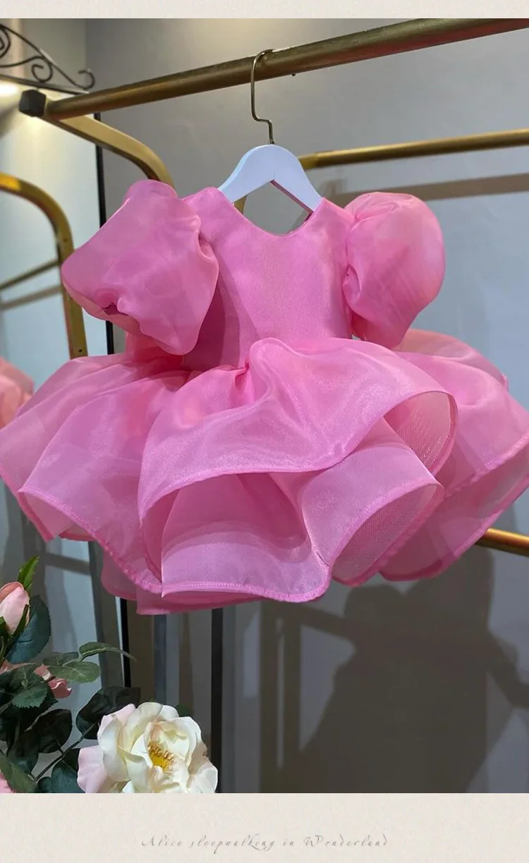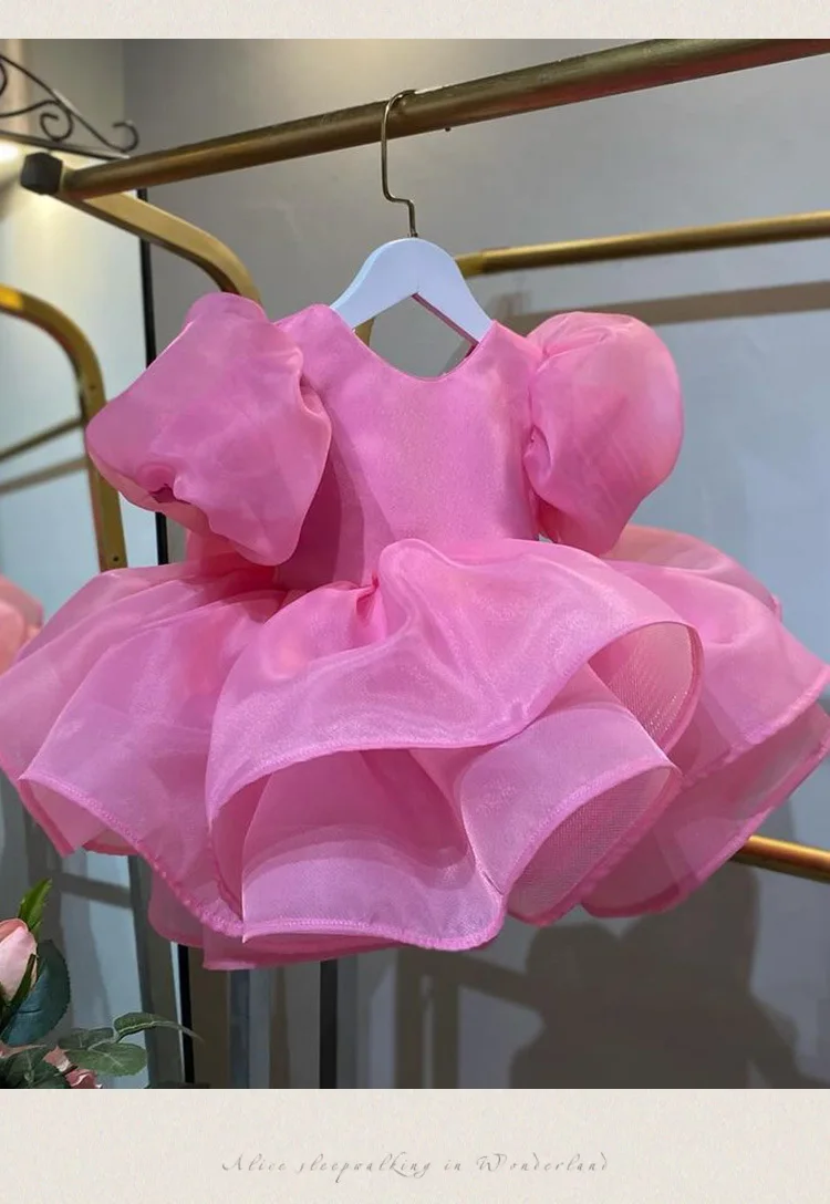 Kids Girls' Puffy Tulle Back Bow Puff Sleeve Princess Dress
