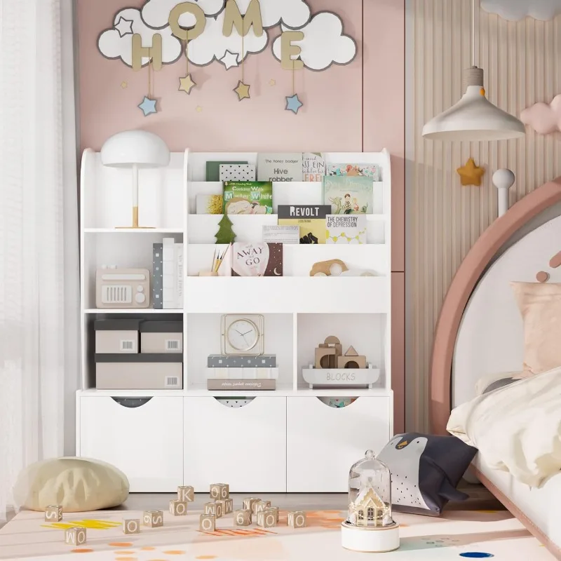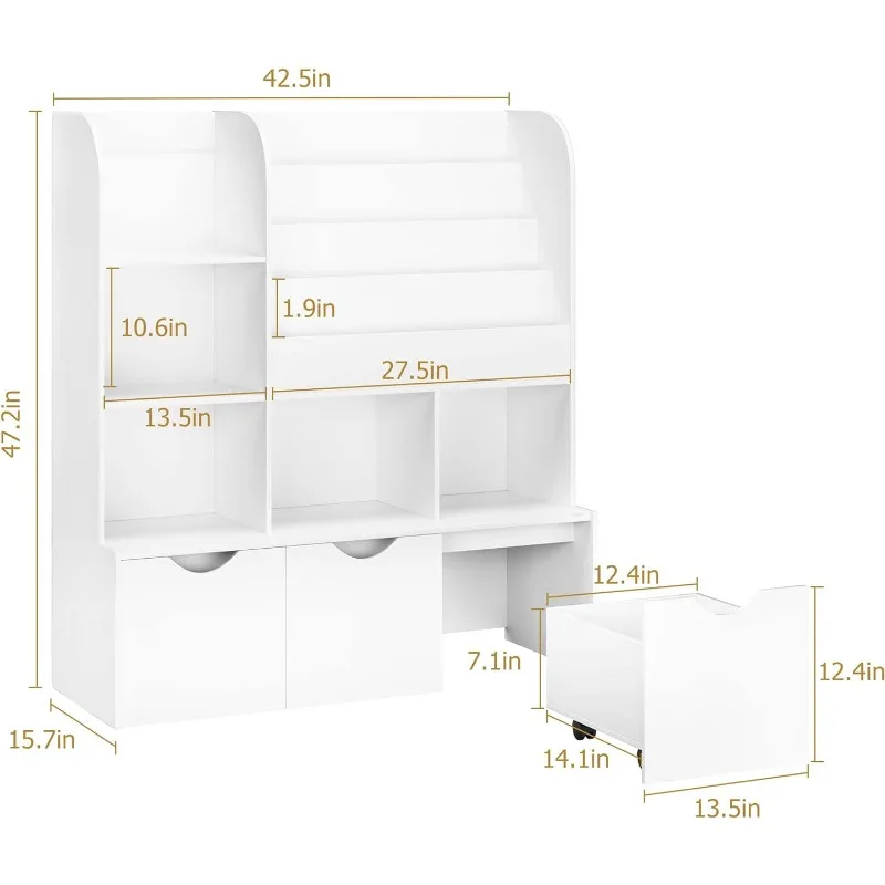 Kids Multipurpose Bookcase with 3 Movable Drawers and 5 Cubbies
