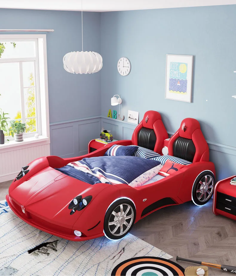 Luxurious Sports Car Design: Leather Bed for Kids