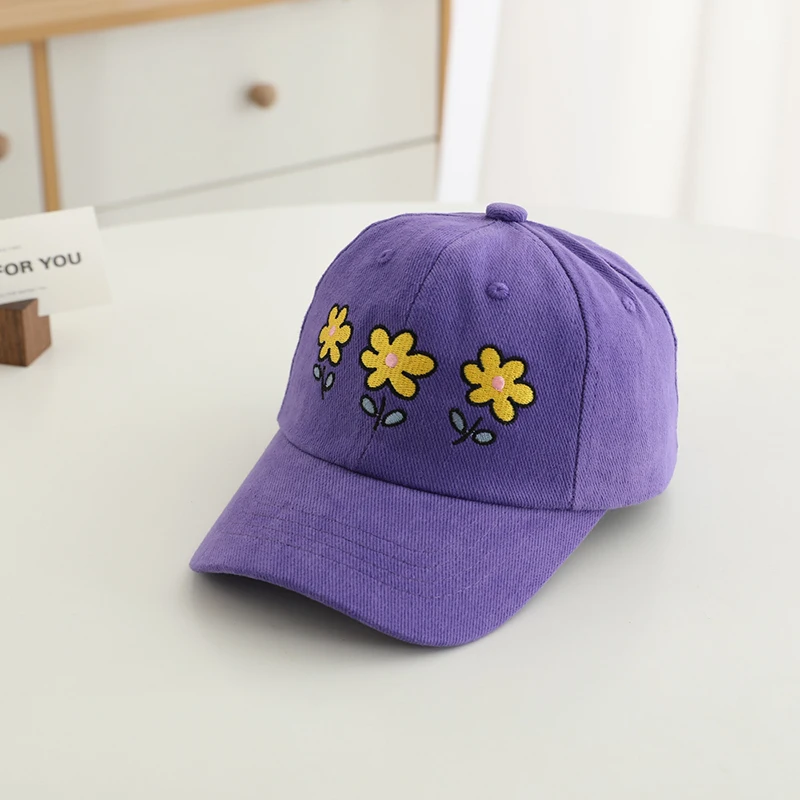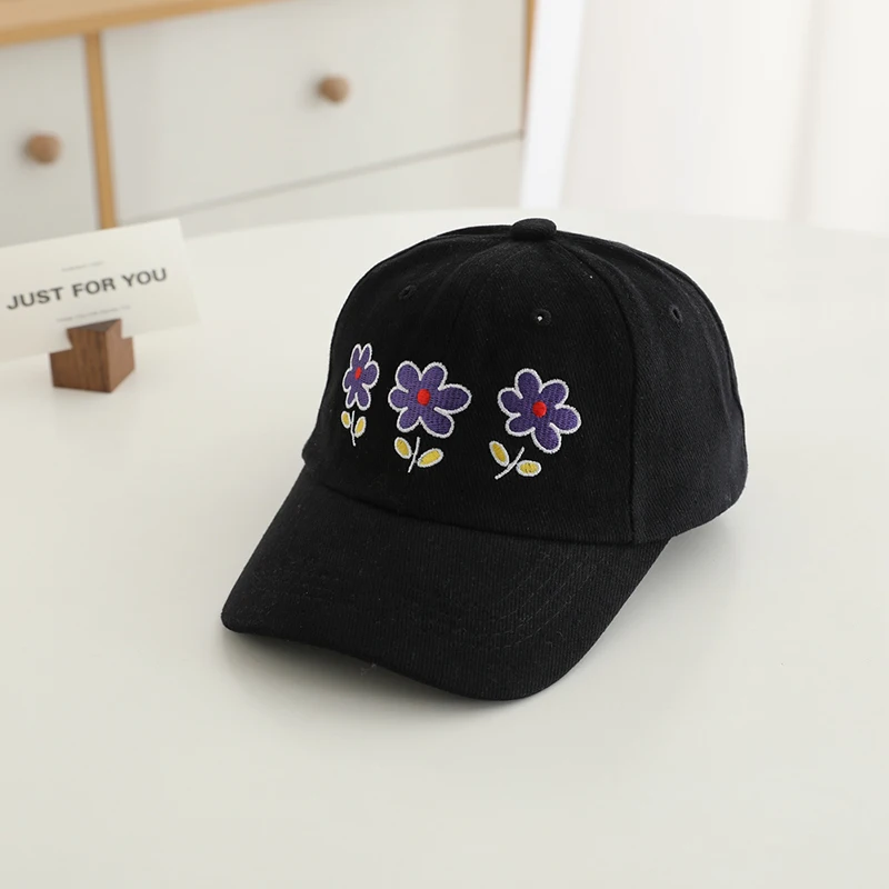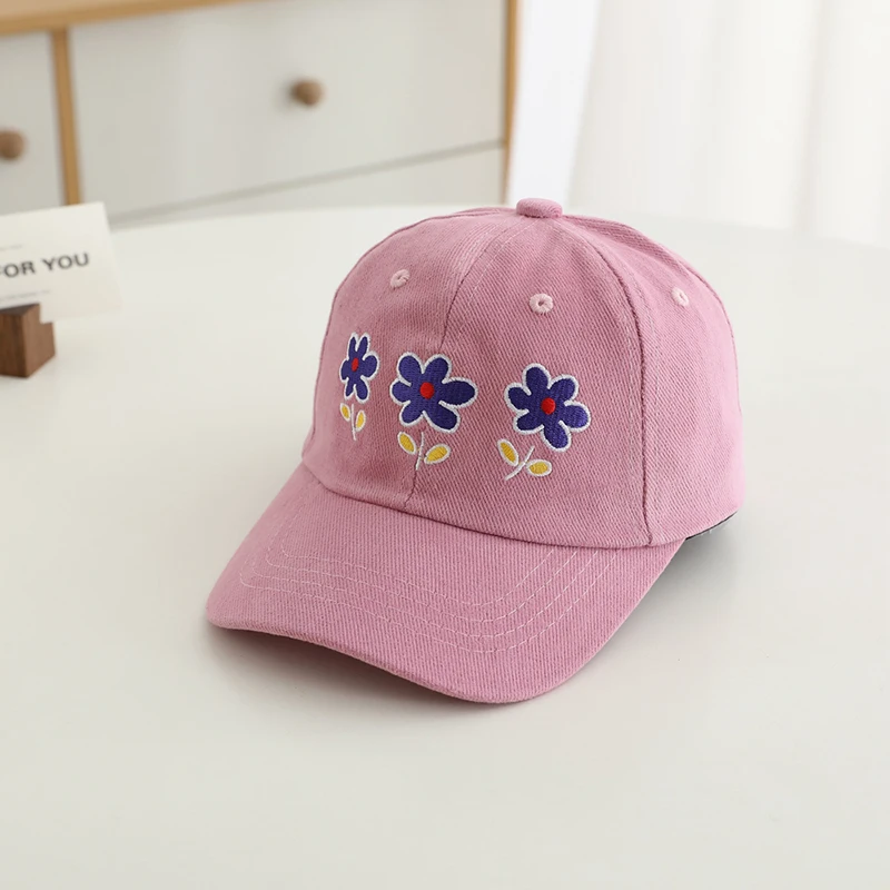 Little Girls Flowers Embroidery Adjustable Sports Caps