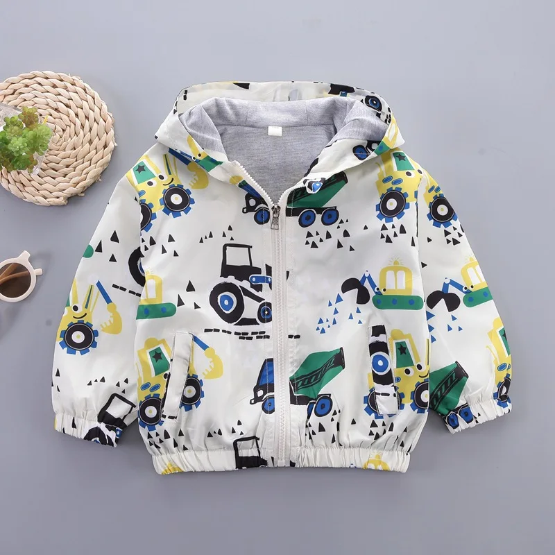 Kids Boys Cartoon Print Long Sleeved Hooded Jackets