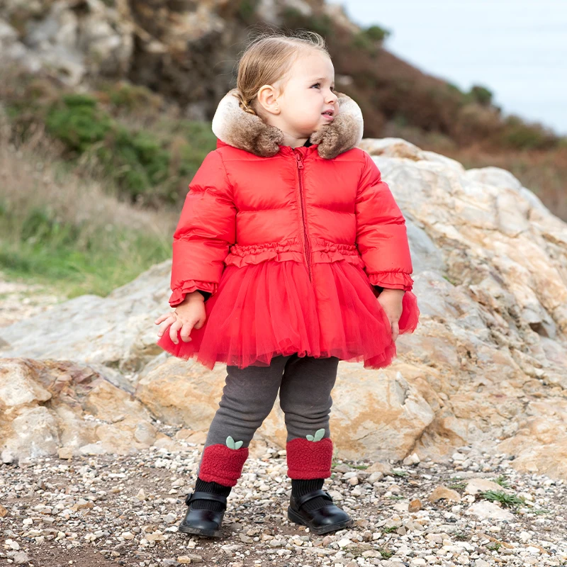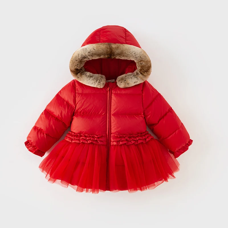 Kids Girls Red Fur Collar Warm Hooded Princess Outerwear