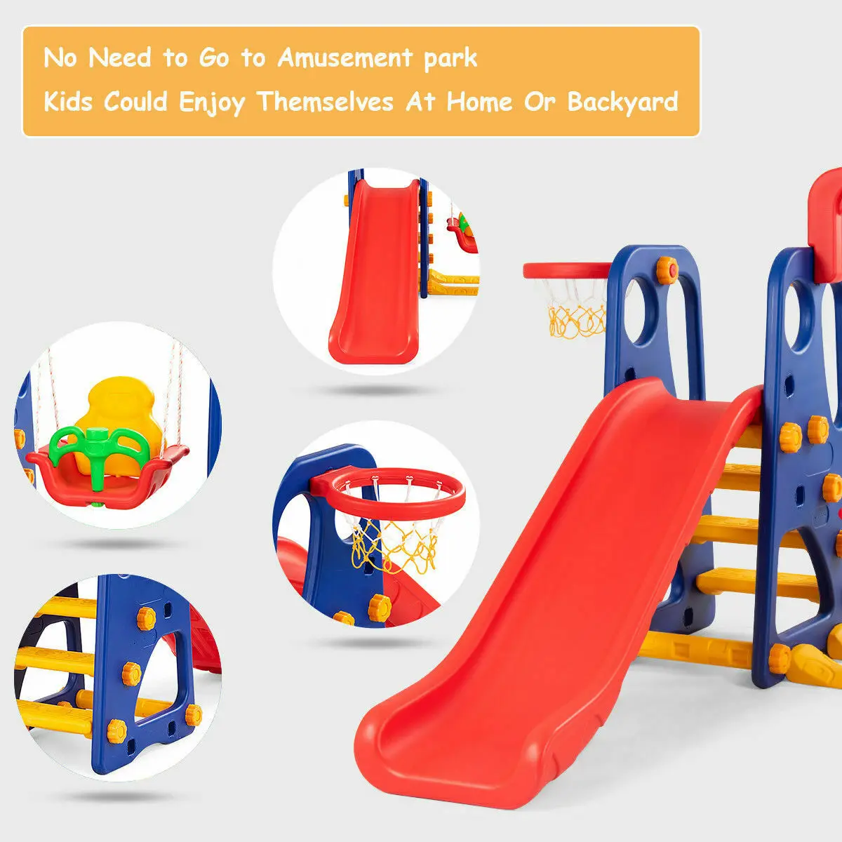 3-in-1 Children Climber Slide/Swing Seat/Basketball Hoop Playset
