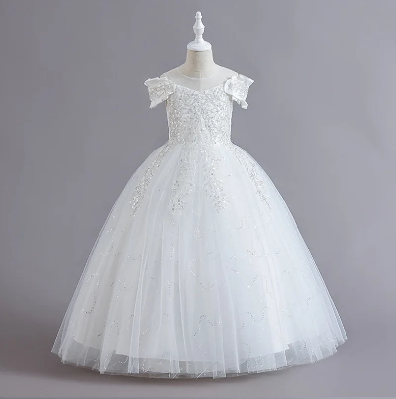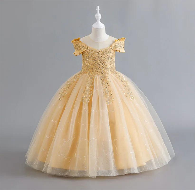 Luxury Sequins Design Long Bridesmaid Princess Dresses For Kids