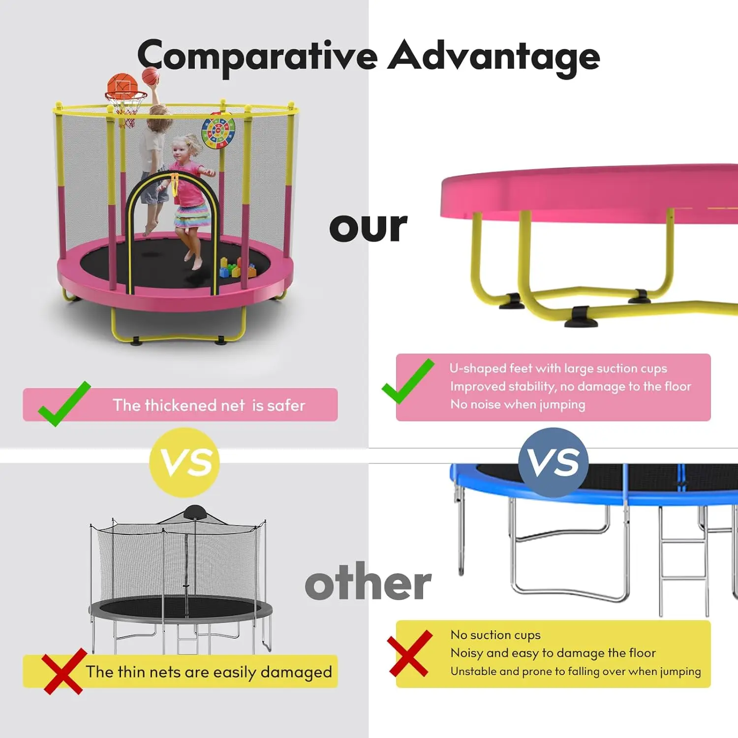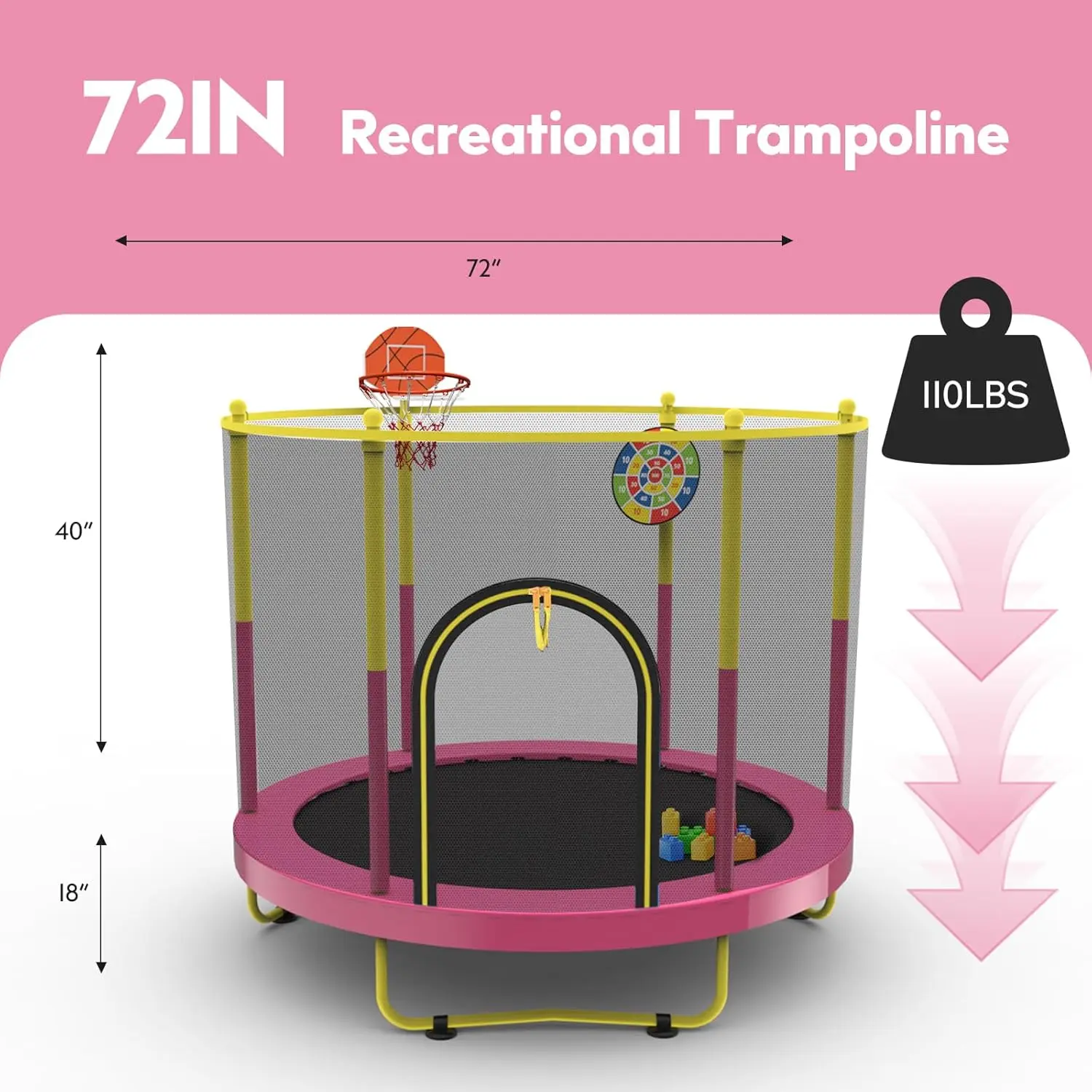 6 FT Trampoline with Basketball Hoop & Dart Board for Kids