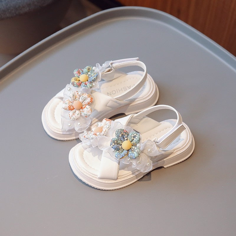 Open Toe Flower Lace Anti Slip Girls Sandals