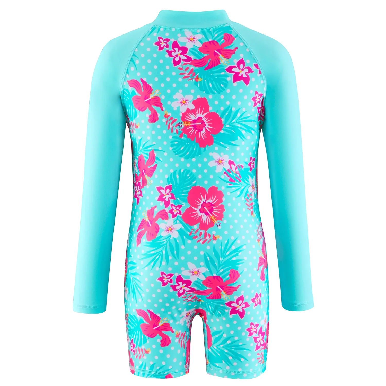 Unicorn and Floral Print Little Girls Zipper Swimsuits