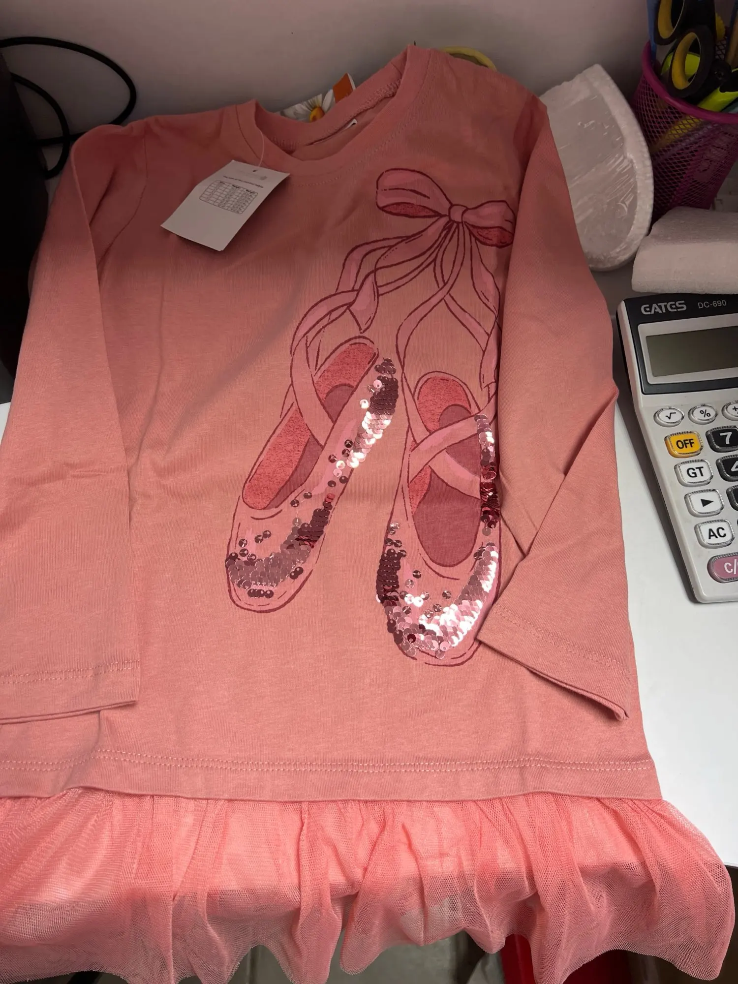 Girls Cartoon Sequin Ballet Shoes Design Cotton Top