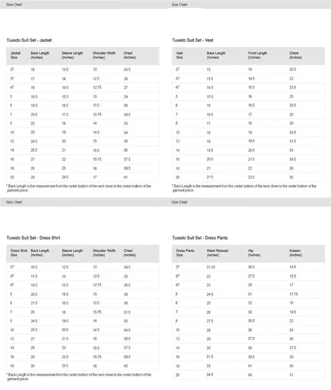 | XL | 14 | 40"-42" | 33"-35" | 43"-45" |