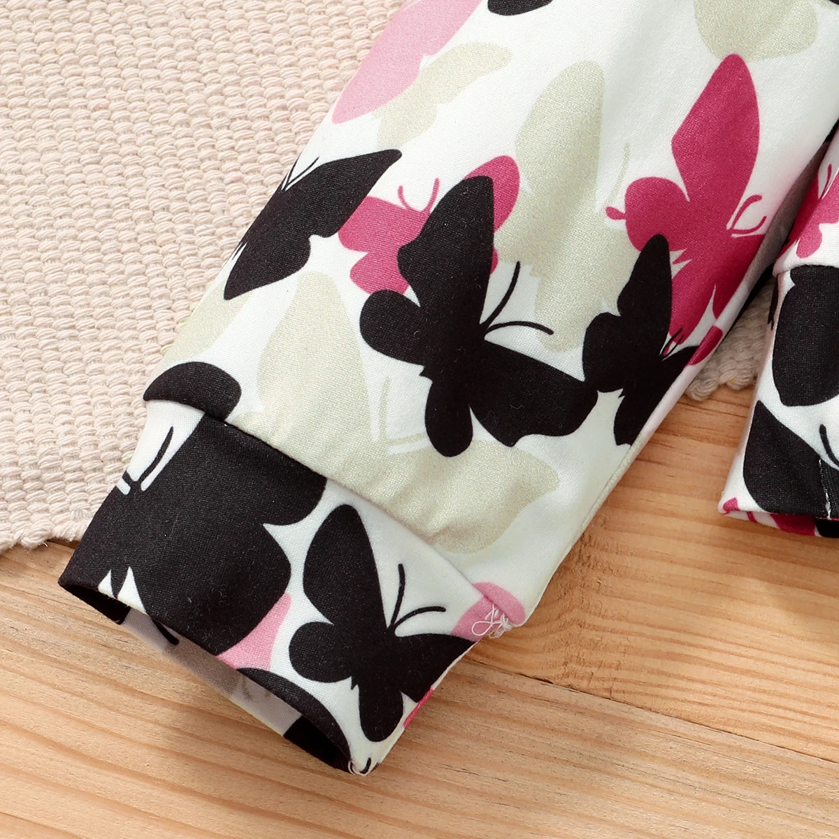 1-6 Years Girls Clothes Set Butterfly Print Top + Black Pant