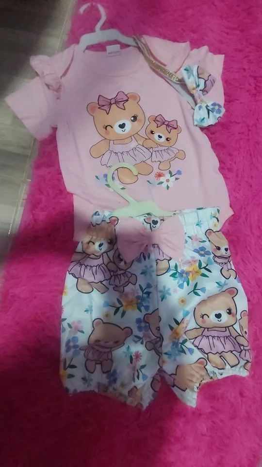 Baby Girl Cartoon Bear Print 3PCS Summer Clothes Set