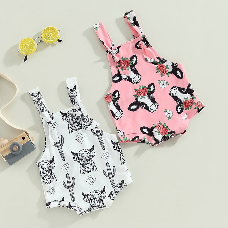 Baby Girl Cow Printed Crew Neck Summer Bodysuit