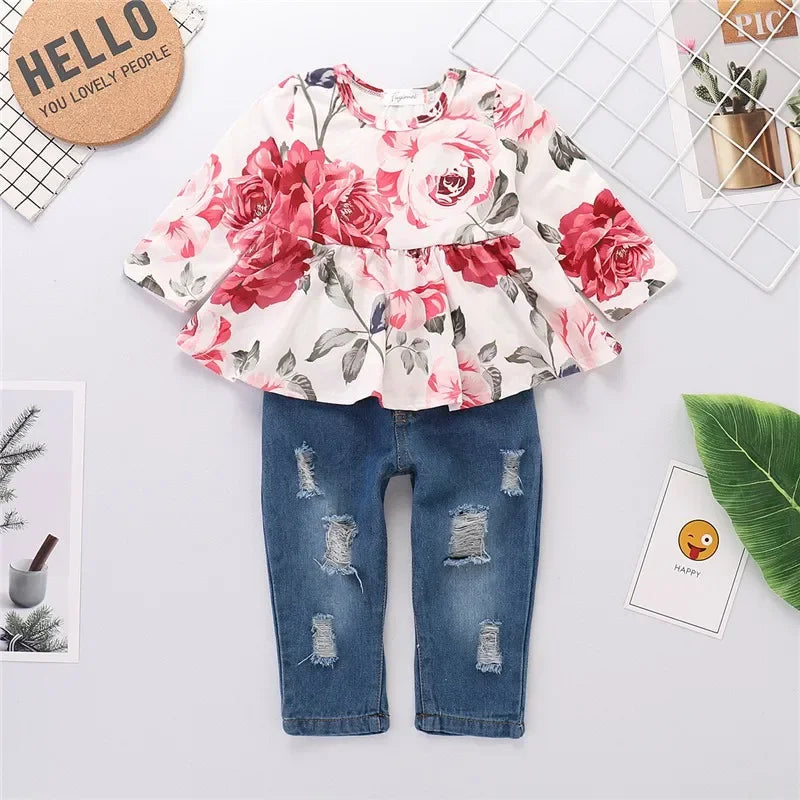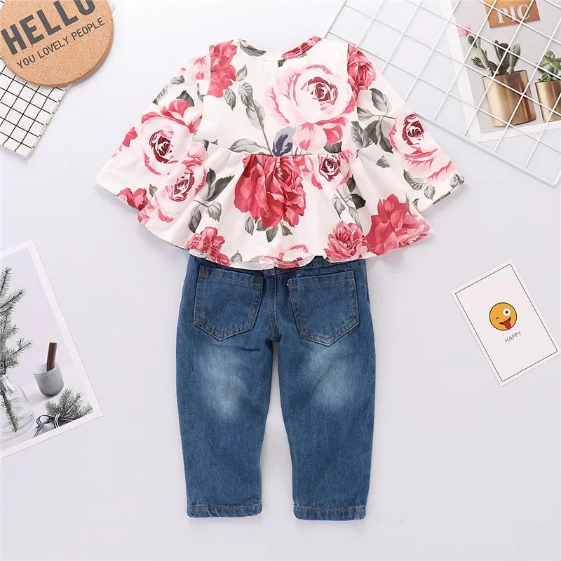 Baby Girl Floral Ruffle Tops+Pants 2pcs Outfit Set
