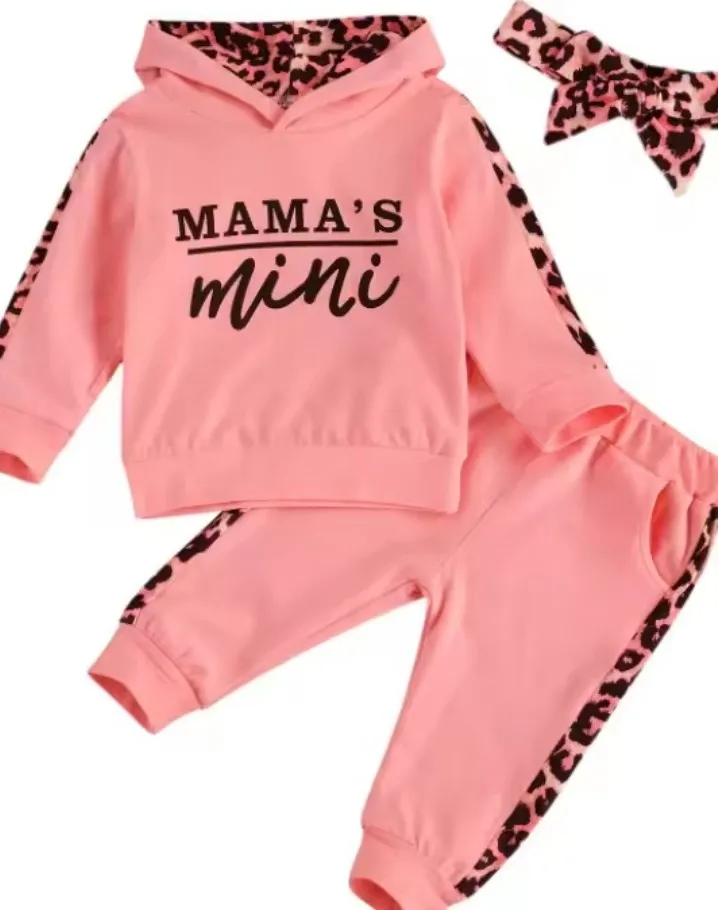 This dainty Baby Girl Leopard Letter Print Hooded Sweatshirt Pants Outfit is a sophisticated pick for little ones. Crafted from a lightweight, breathable fabric that is gentle on delicate skin, the set features mommy's mini letter print for a chic, exclusive look. Perfect for days when comfort is key.