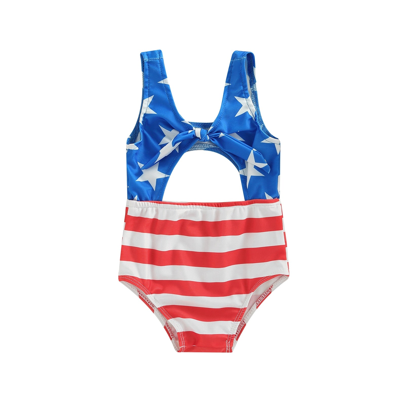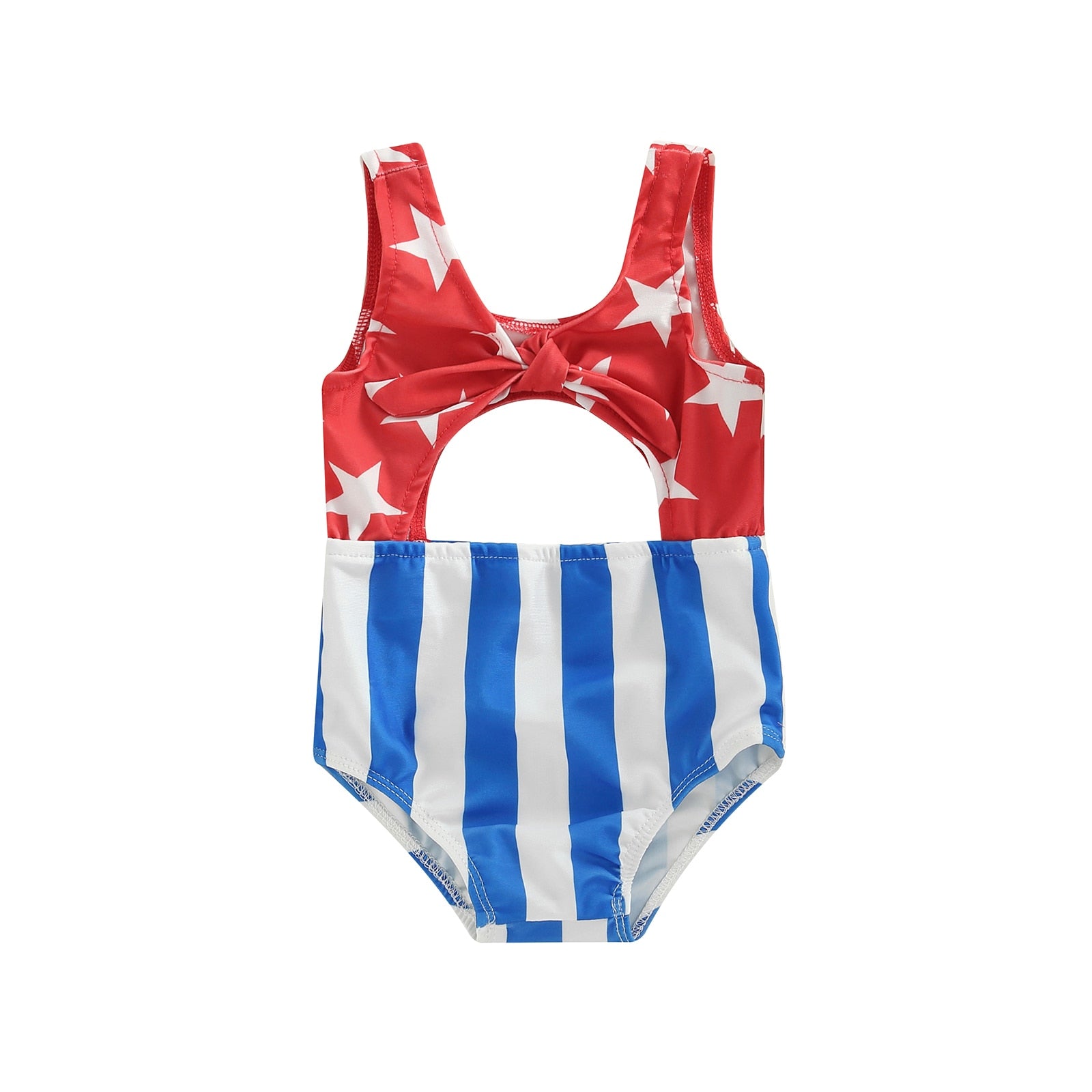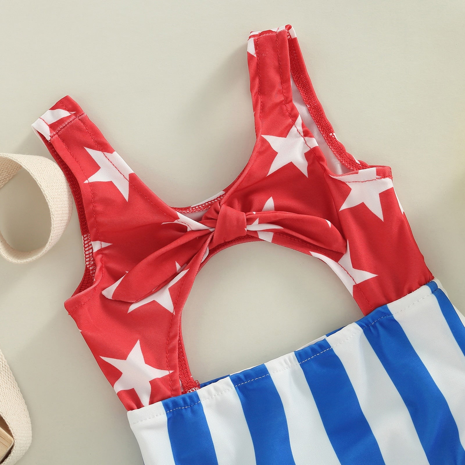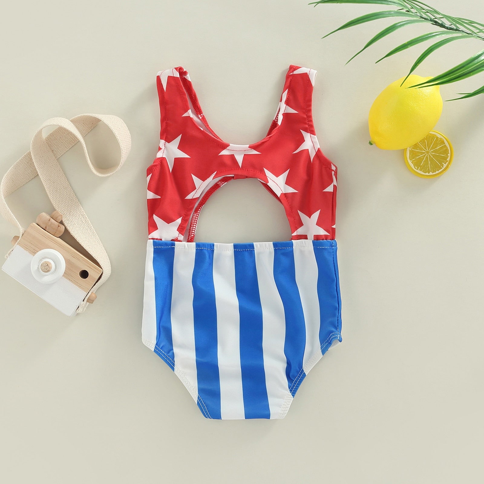 Baby Girl Stars Strip Print Sleeveless Swimwear