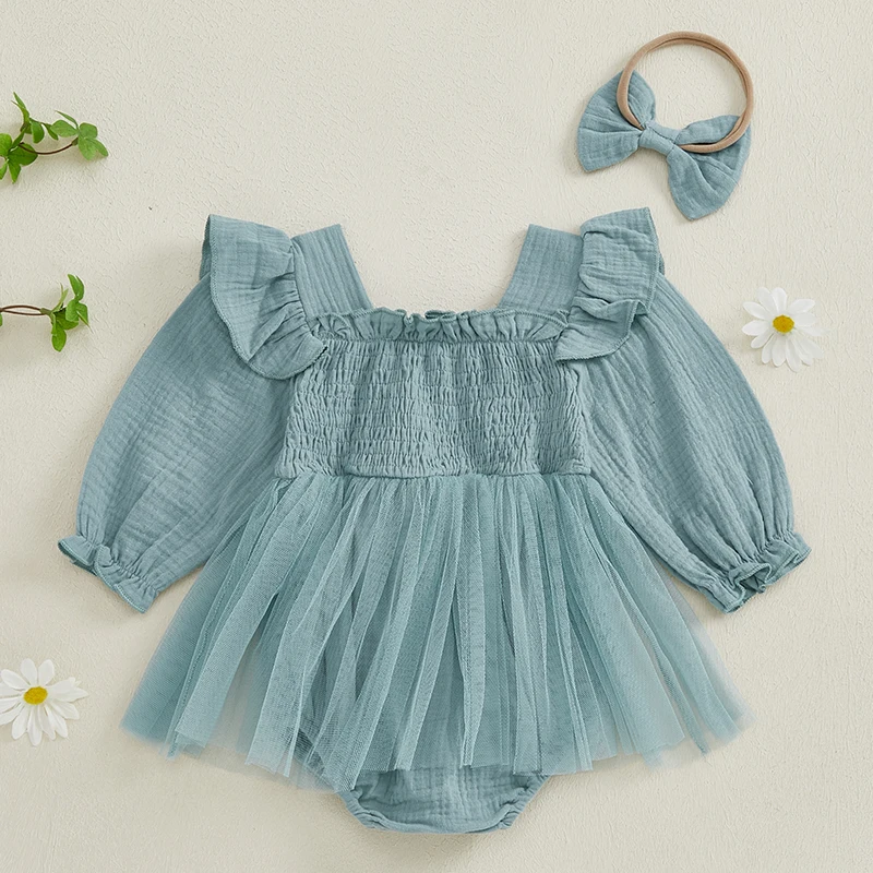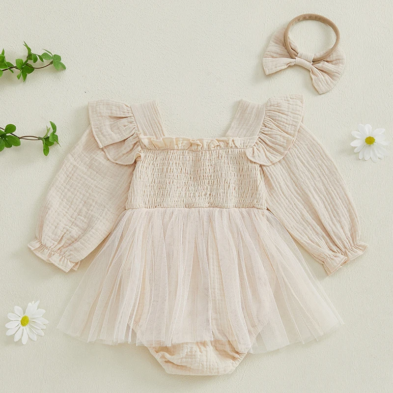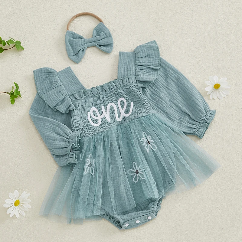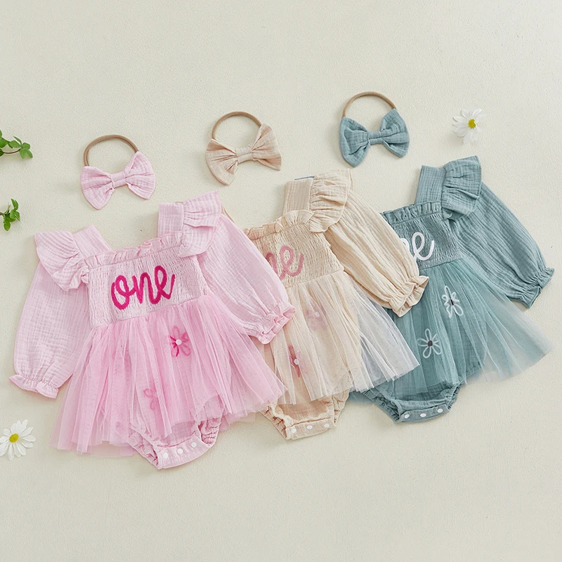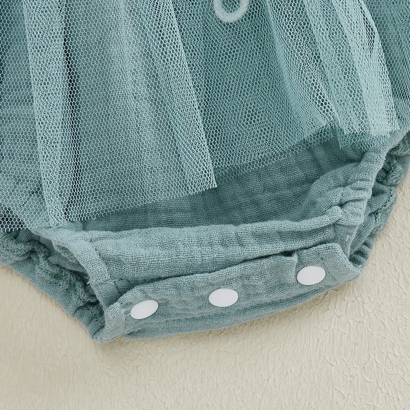 Baby Girls Letter Pattern Ruffled Mesh Romper Dresses
