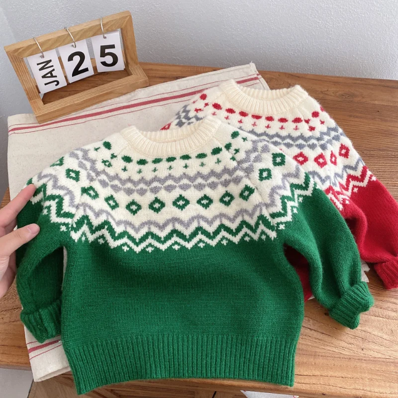 Boys' Long-Sleeved Knitted Winter Sweater