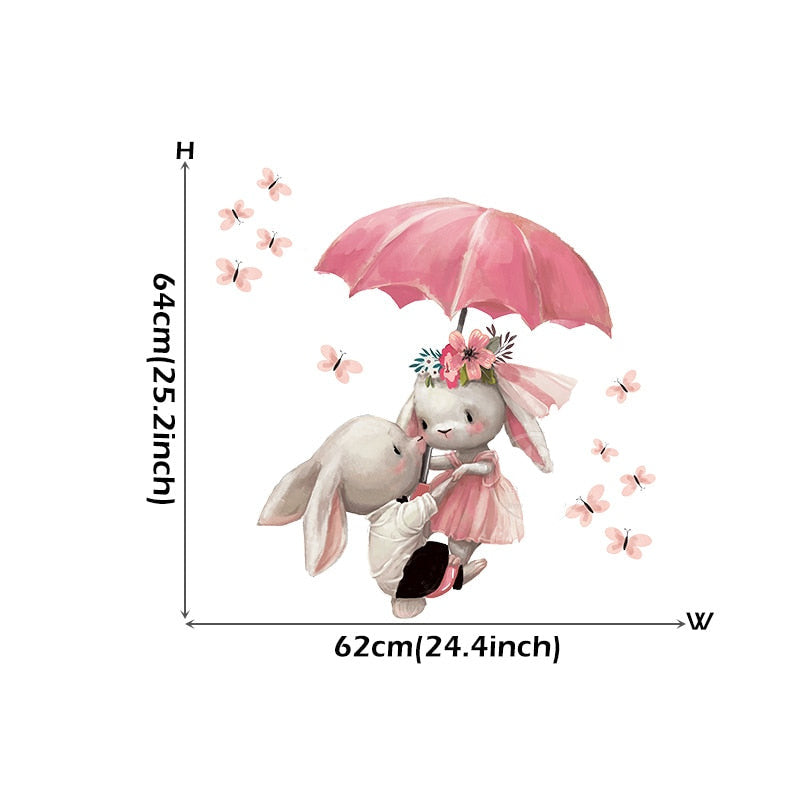 Bunny in Love Pink Wall Decals for Baby Girls Room