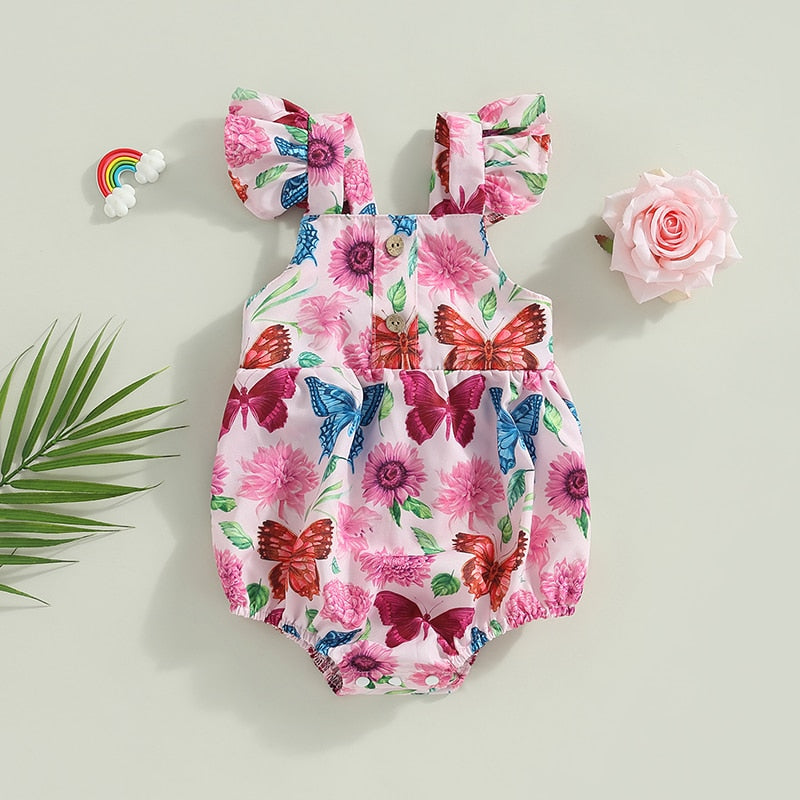 Butterfly Flower Print Baby Girls Summer Bodysuit
